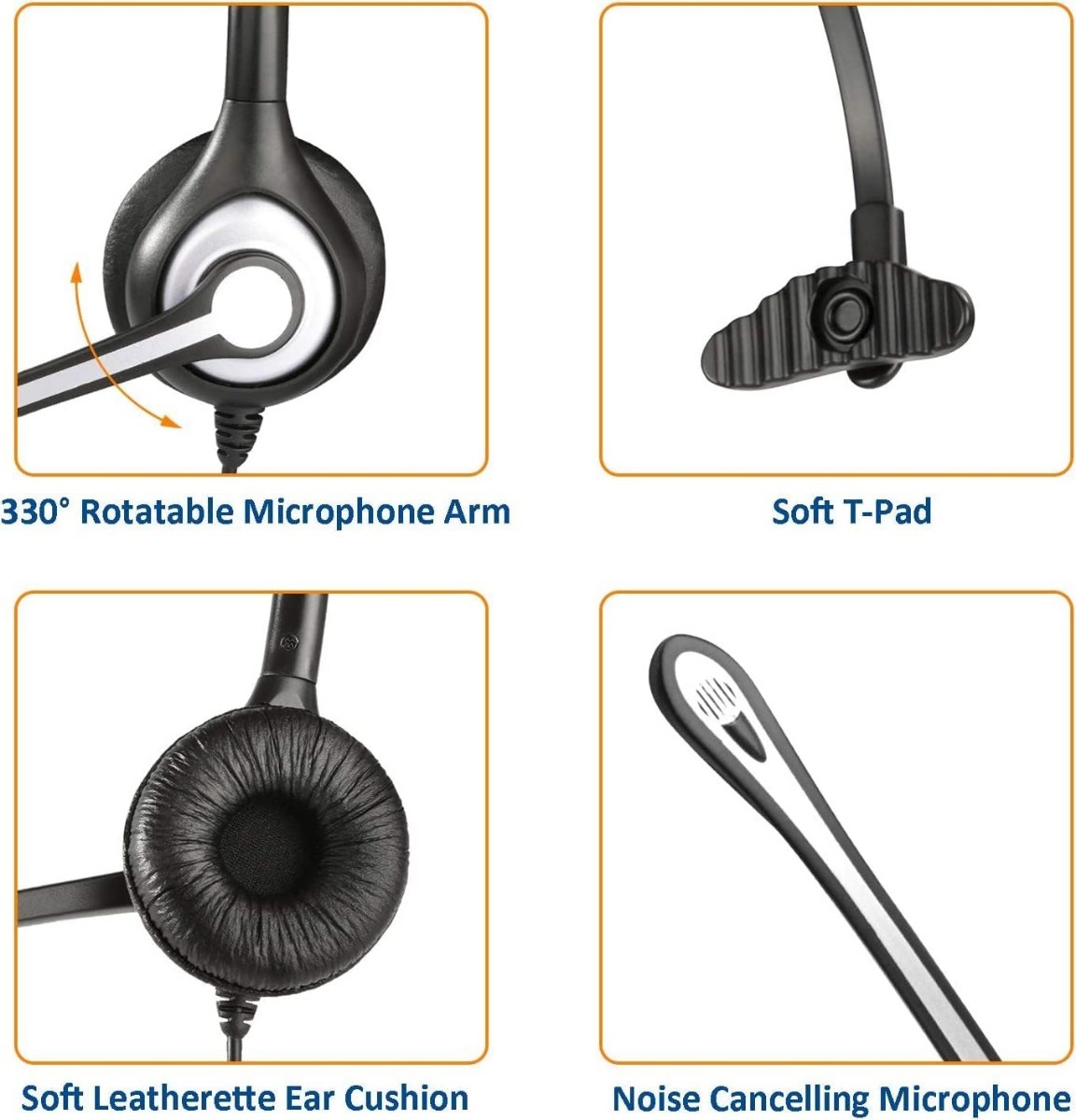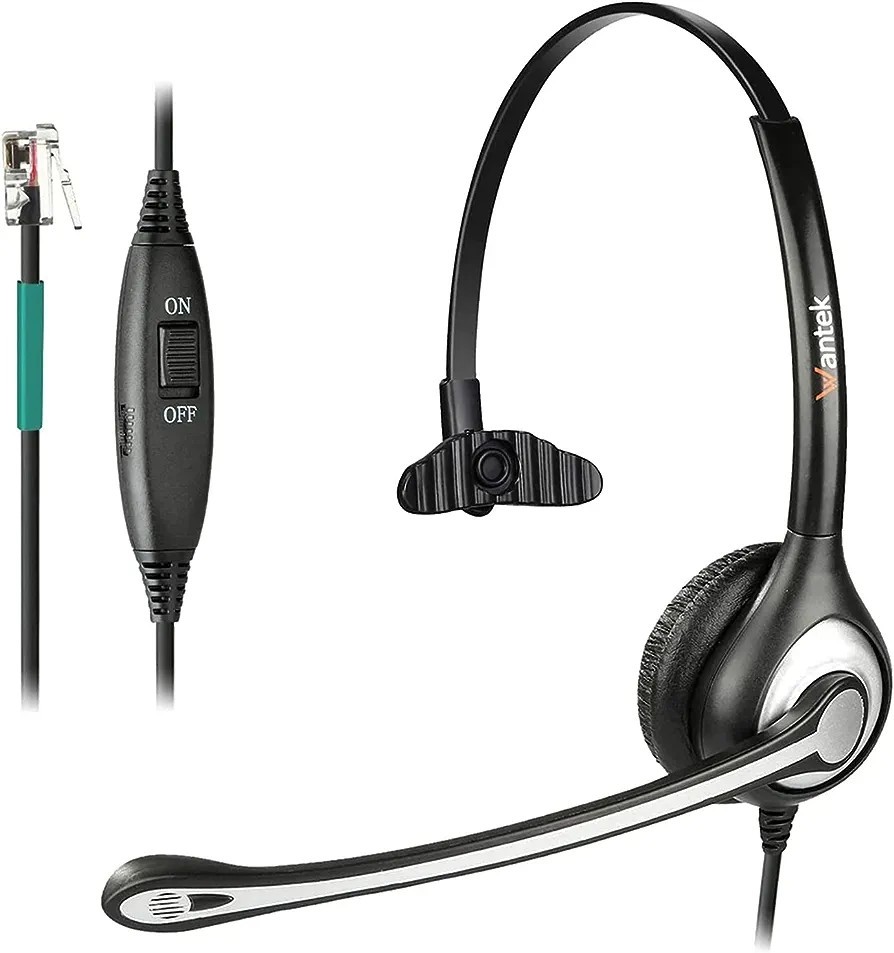 電話機用 ヘッドセット 片耳 ノイズキャンセリングマイク付き固定電話機用ヘッドフォンWantek RJ9コールセンター電話機用ヘッドセット Avaya Plantronics Polycom Zultys Gigaset NEC Mitel Alcatel対応