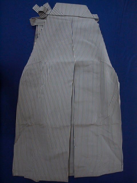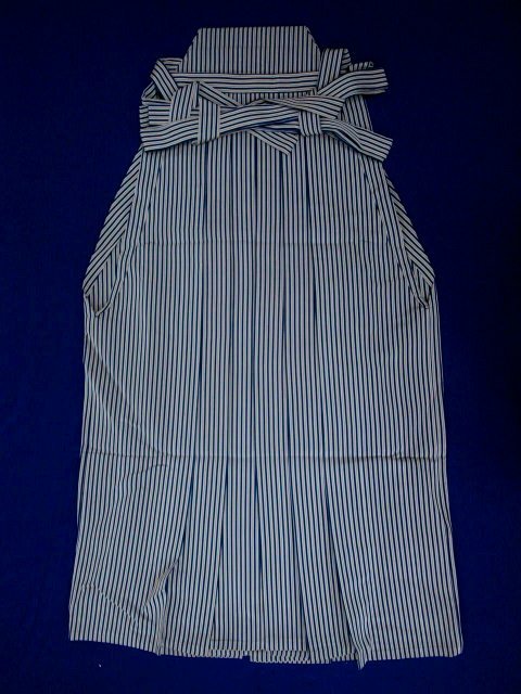 貸衣装処分品 0504 男性用袴 2尺4寸 行燈型 紺/黄土 縞 91㎝(175㎝前後)(レターパック不可)