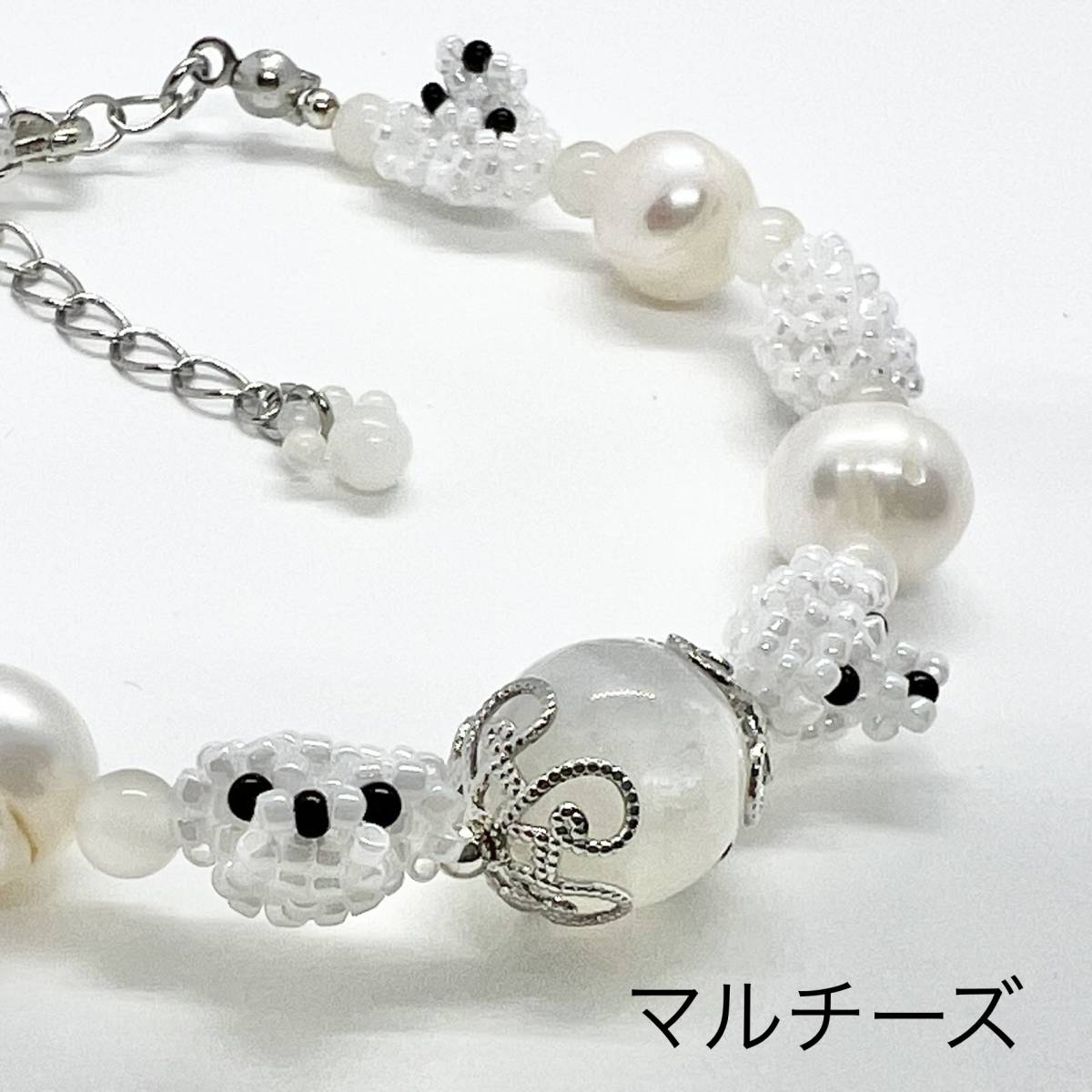ビーズで編んだマルチーズちゃんお顔と