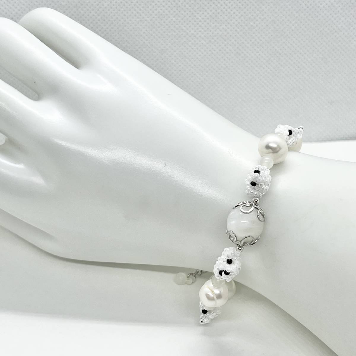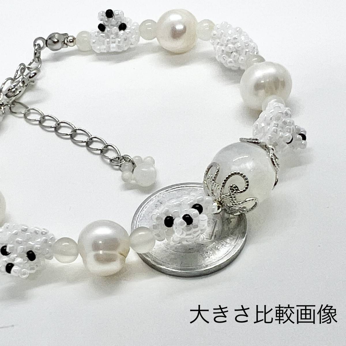 しっかりと編んでありますがビーズはたいへん繊細なものですのでお取り扱いはご丁寧にお願いします♪