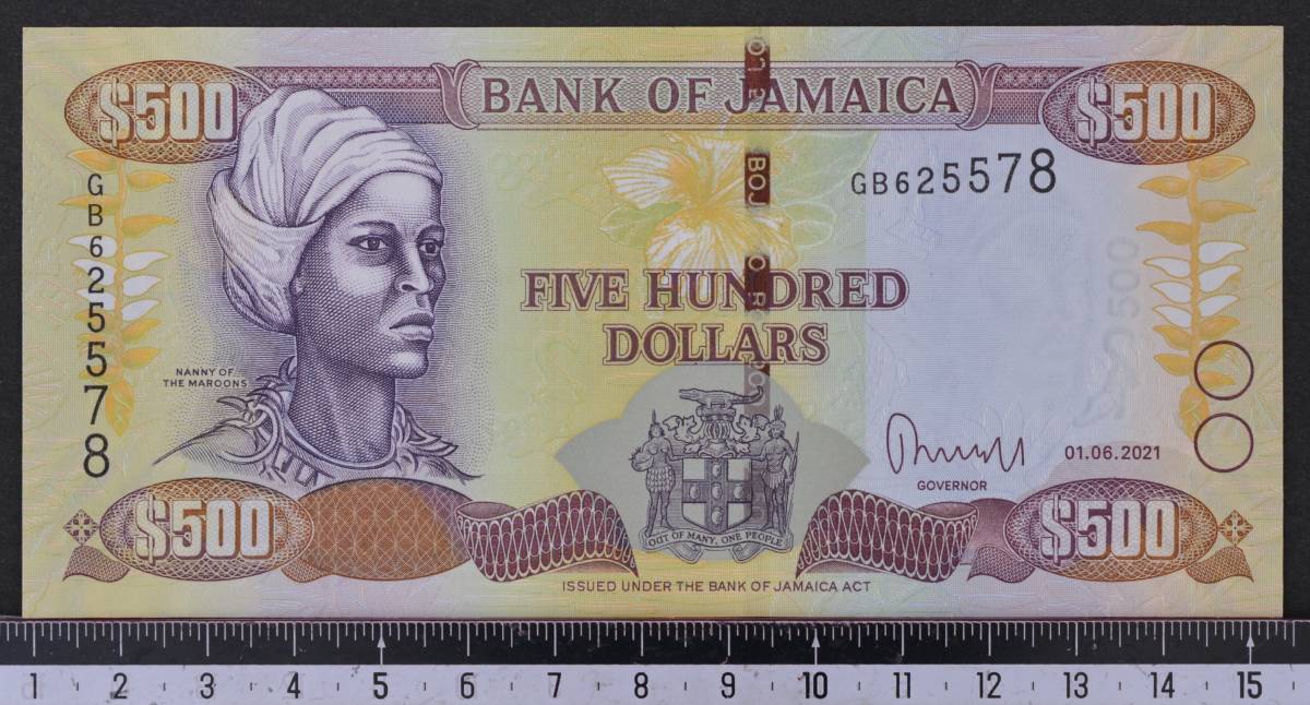 外国紙幣 ジャマイカ 2021年 未使用 500ドル