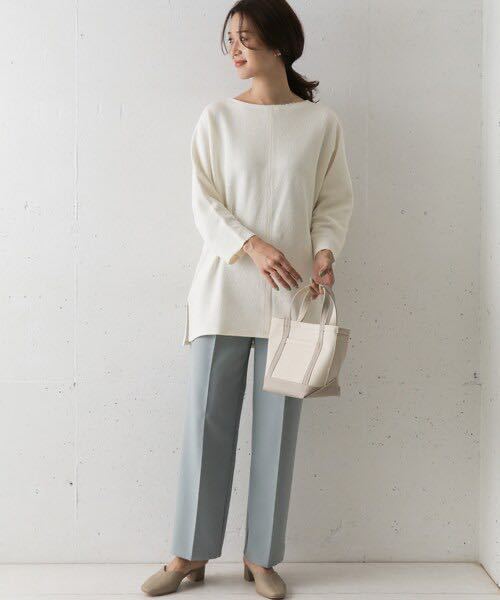 少し長めのチュニック丈ながらも広がりすぎないシルエットや、センターに入った切り替えがさらにスッキリとした印象を与えてくれるため通勤着としても活躍しそう。