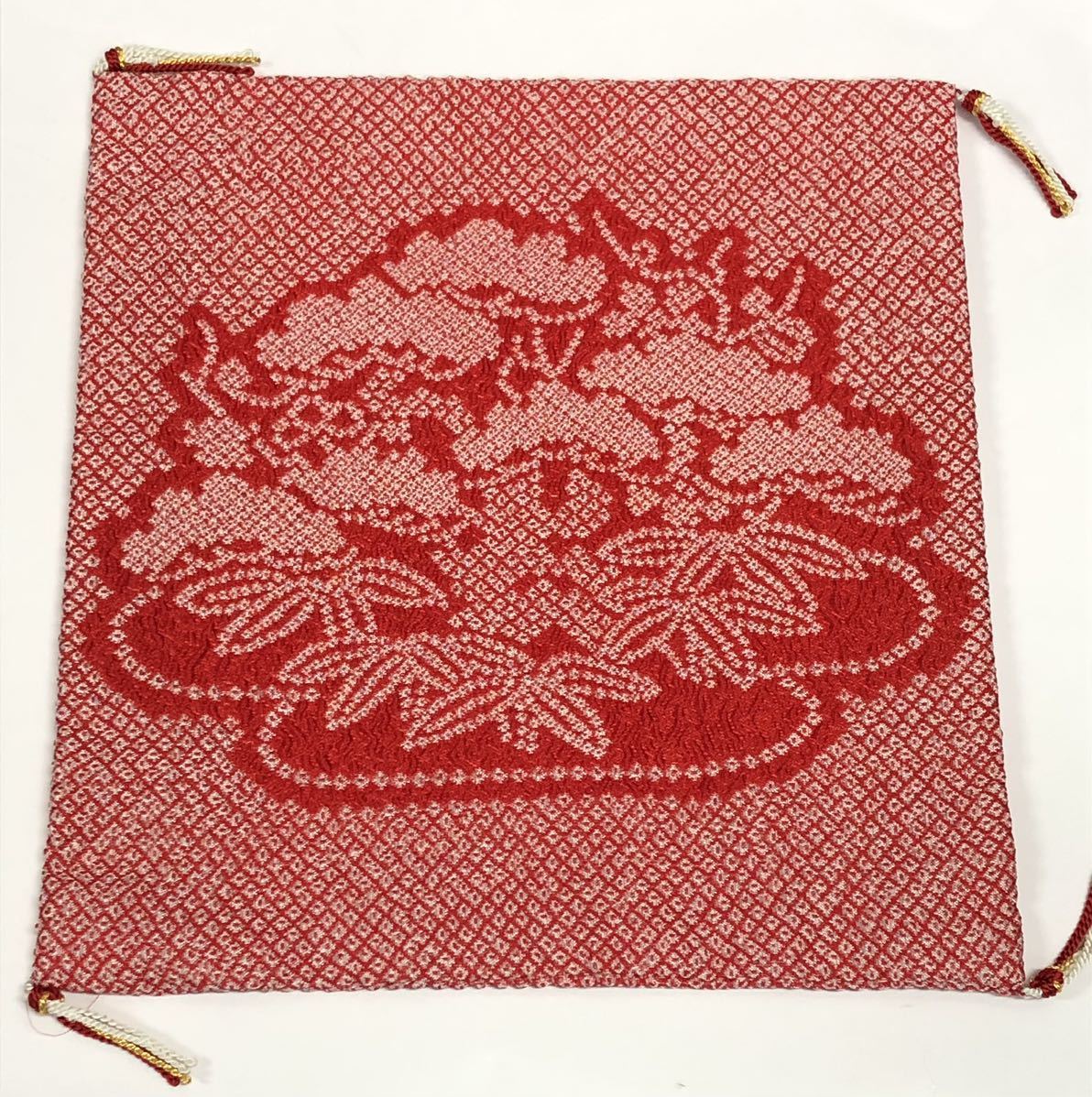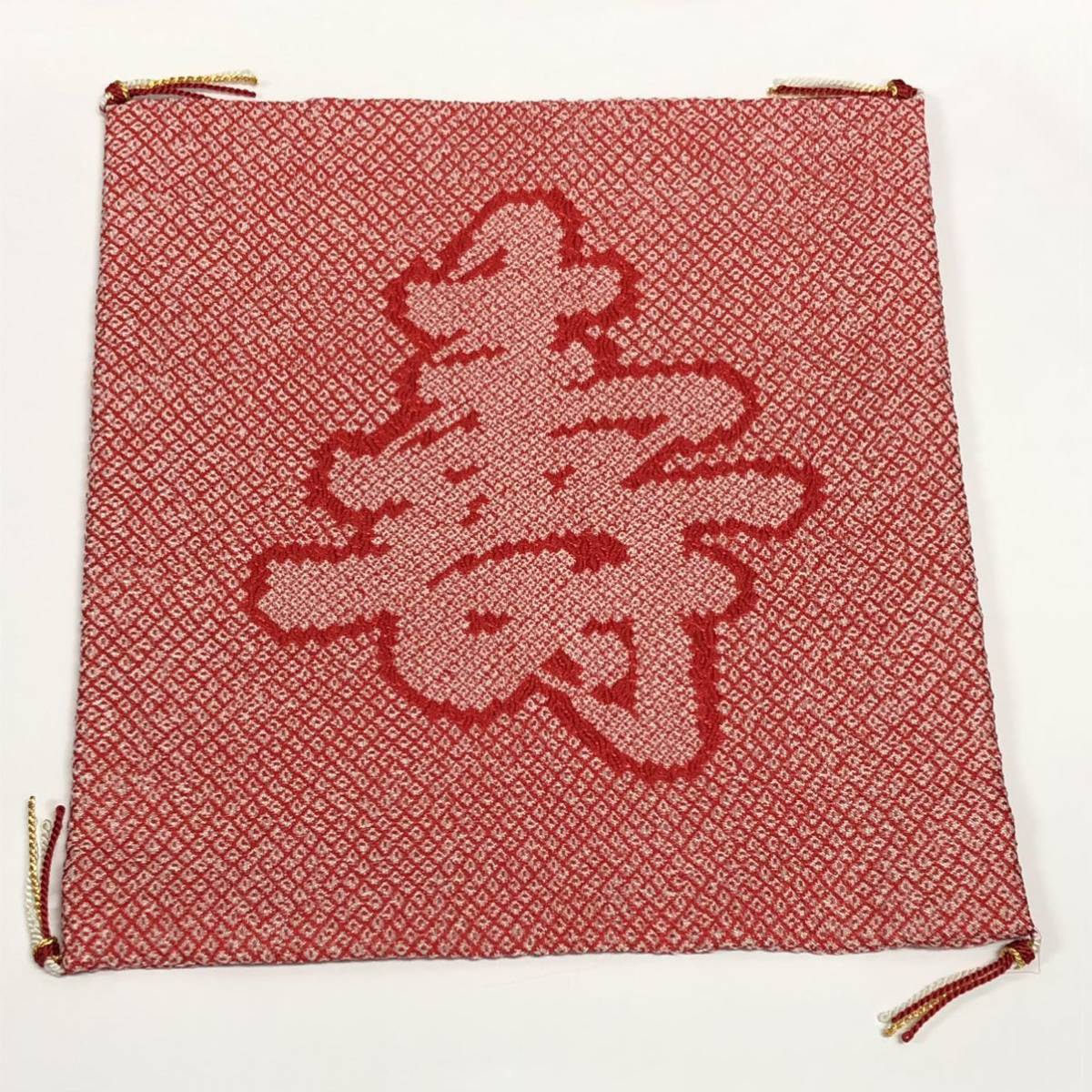 未使用 ♪ 総絞り 掛袱紗 かけふくさ 約26×28cm 寿 松 赤系
