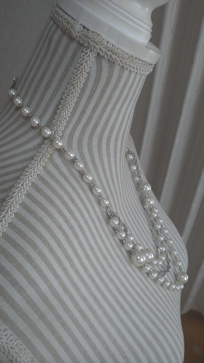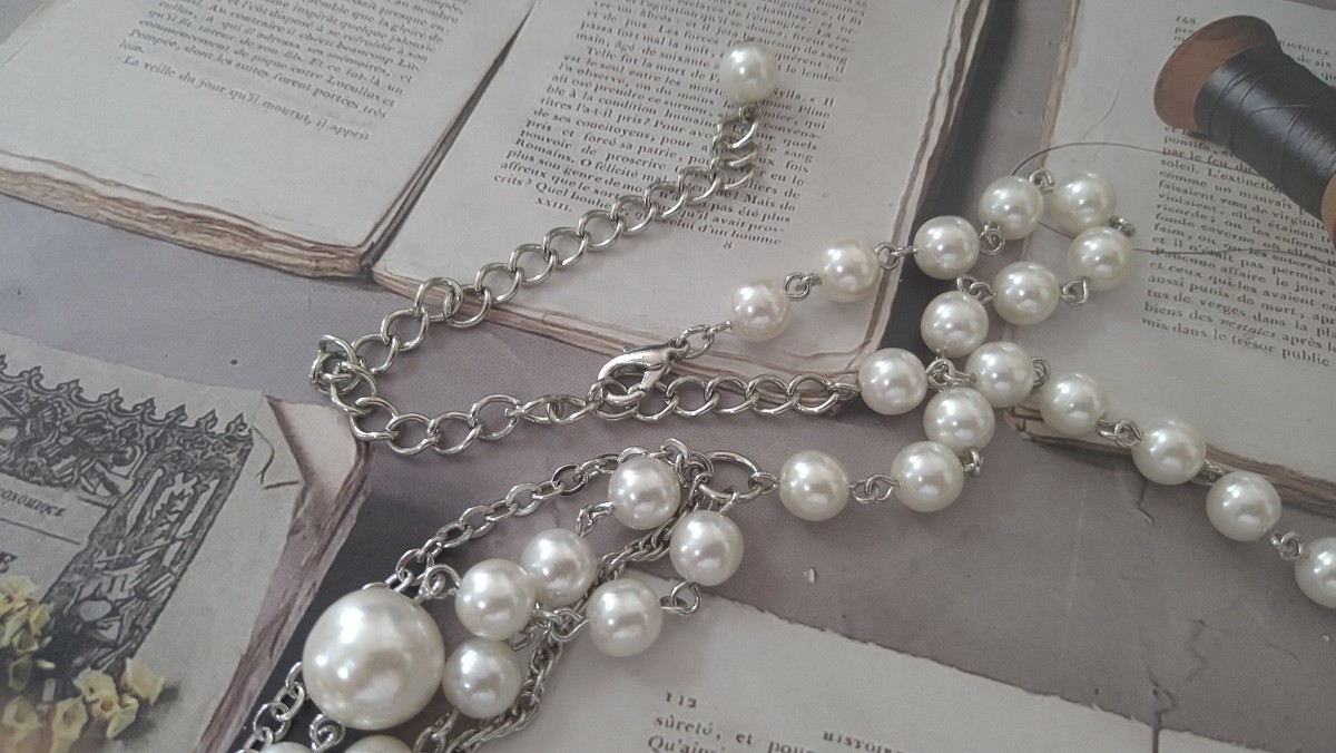 パールビーズ×シルバーカラーチェーン ハーフ4連・ネックレス | |||