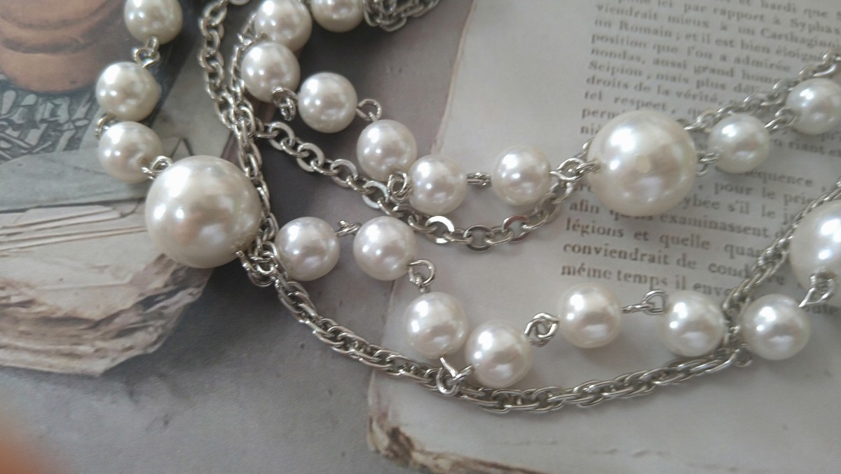 パールビーズ×シルバーカラーのネックレスです 材質:不明 長さ:69cm 特に目立つ様な汚れはありません ノークレーム・ノーリターンでお願い致します 管理番号9932 | |||