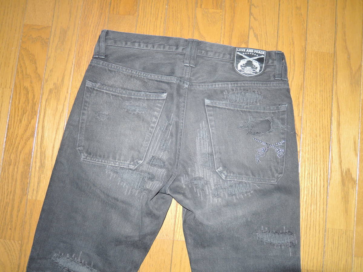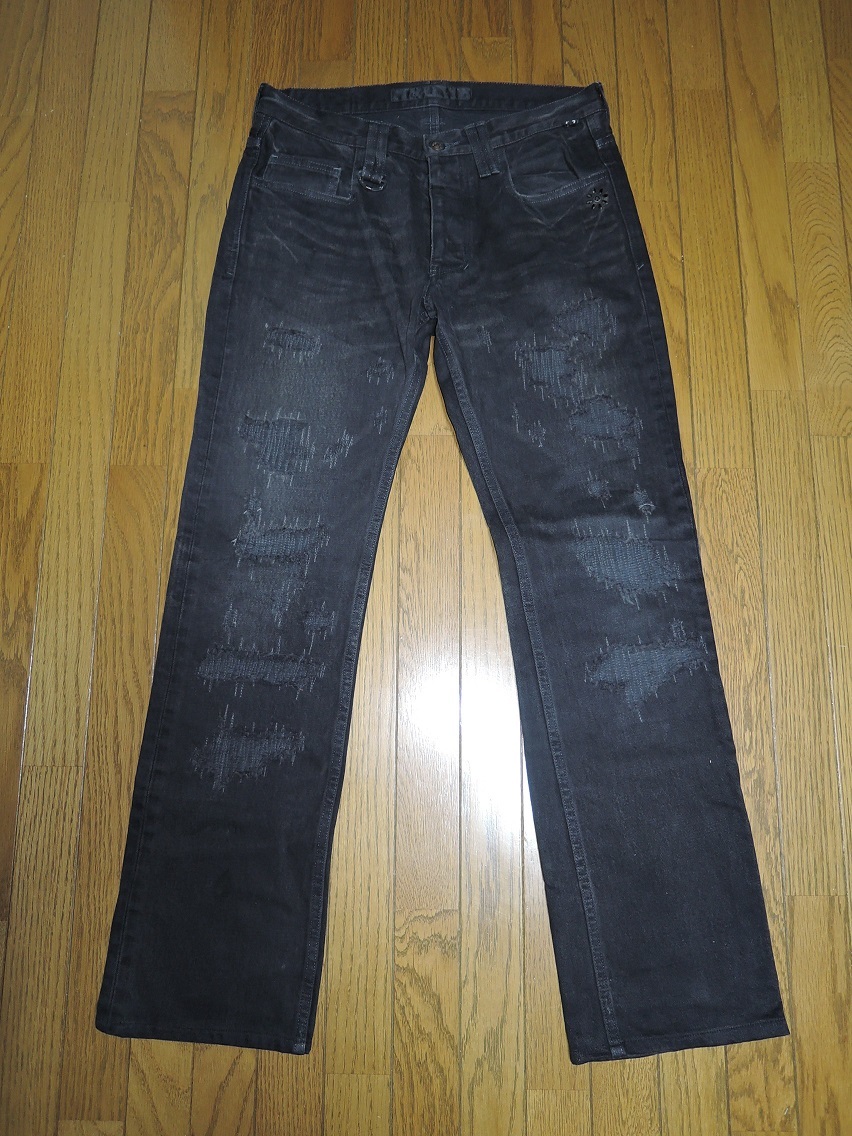 roar ロアー ダメージ加工 ブラック デニム 1 黒 クラッシュ 2丁拳銃 カラビナ バイオストーンケミカル /