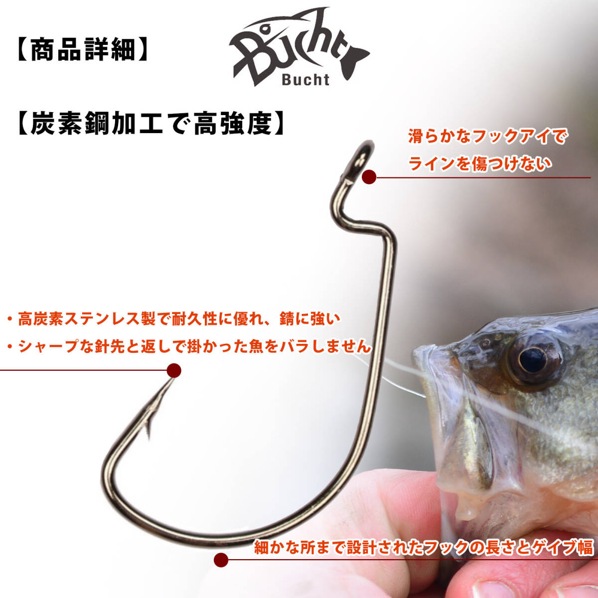 ・オフセットフックにワームキーパーを取り付けることで、ワームがしっかりネジに入り込みワームのズレを低減します。