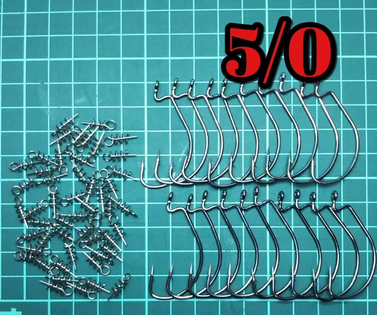 オフセットフック 5/0 20本 ワームキーパー 50個 バス釣り ルアー ハヤブサ がまかつ