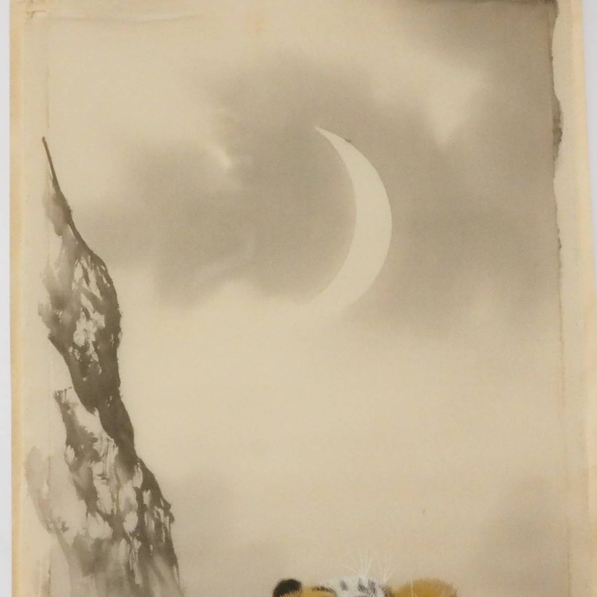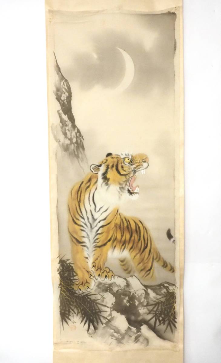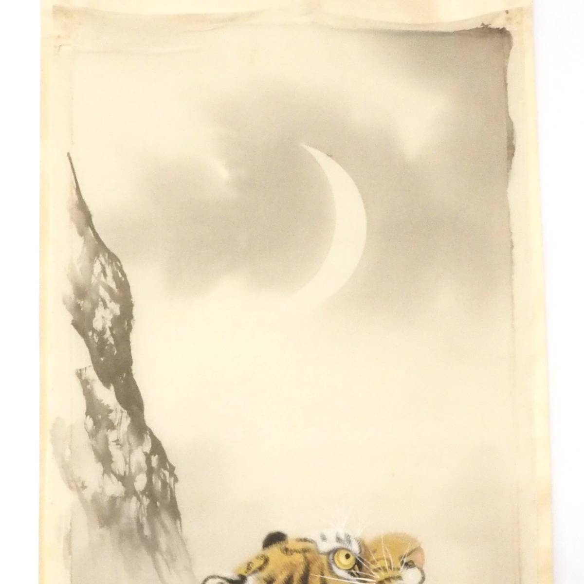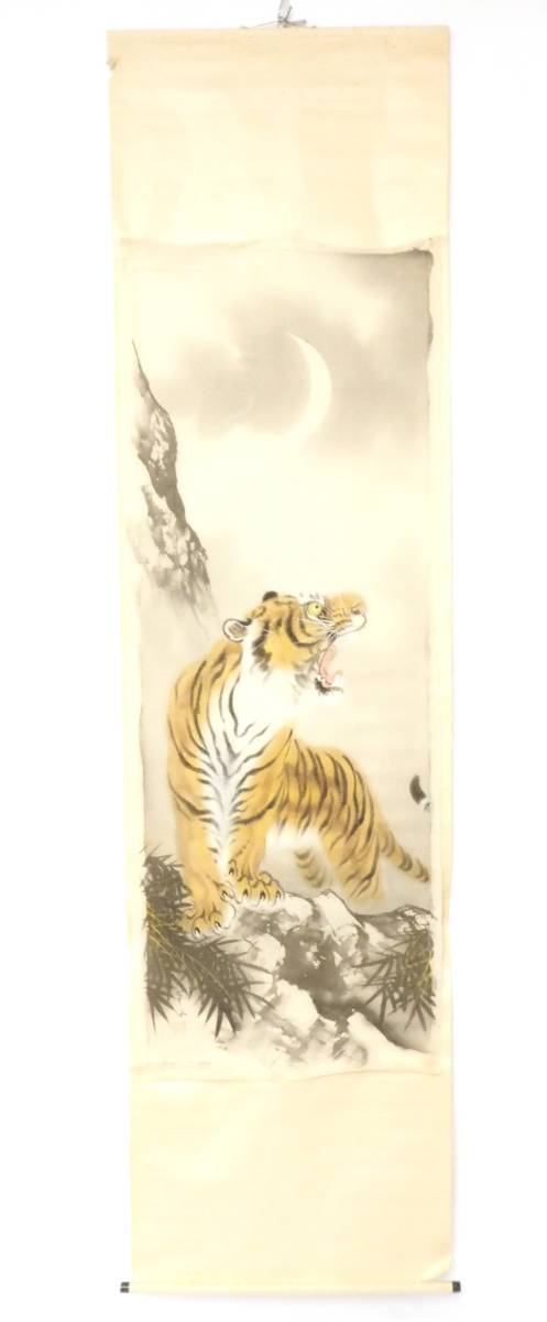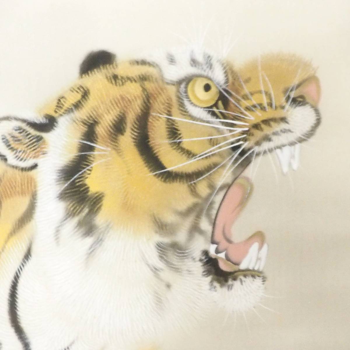 大正昭和期ビンテージ 『猛虎図』日本画  掛軸  在銘品 落款有 絹本  箱無し
