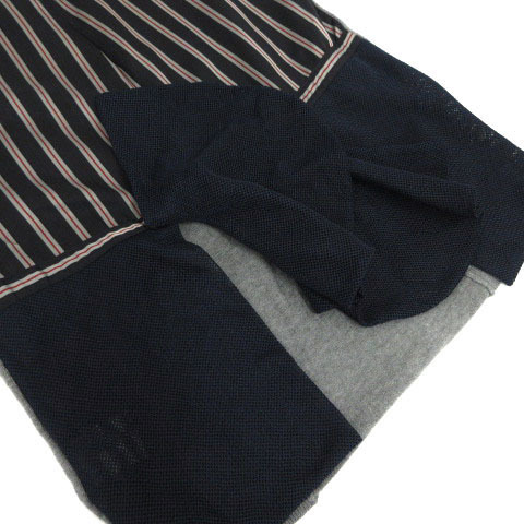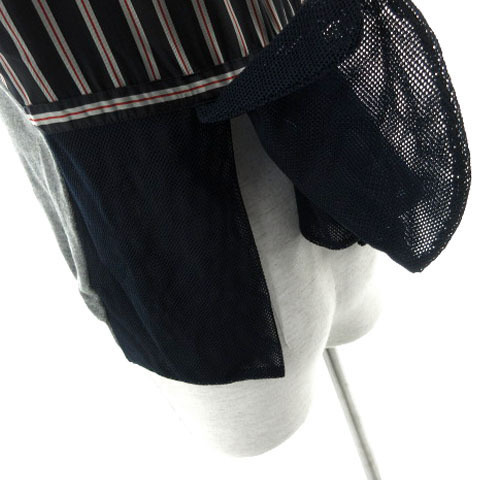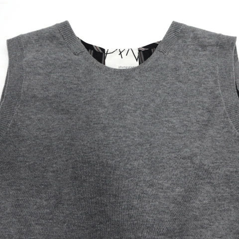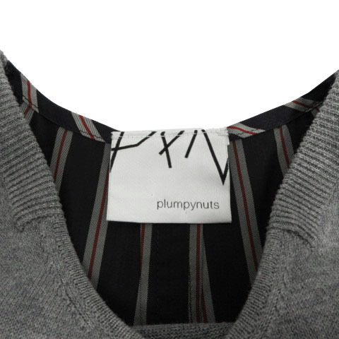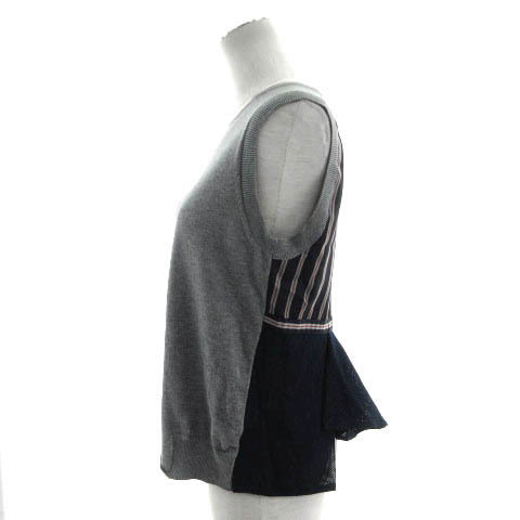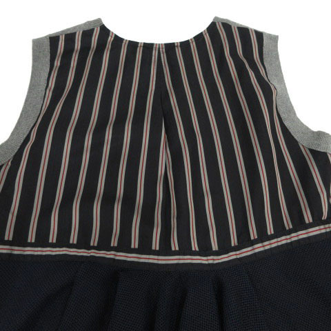 プランピーナッツ plumpynuts ニット カットソー ノースリーブ 切替え コットン ストライプ グレー ネイビー 紺 レッド 赤