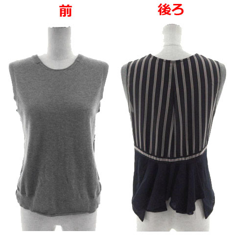 【仕様】ニット カットソー ノースリーブ 切替え ストライプ