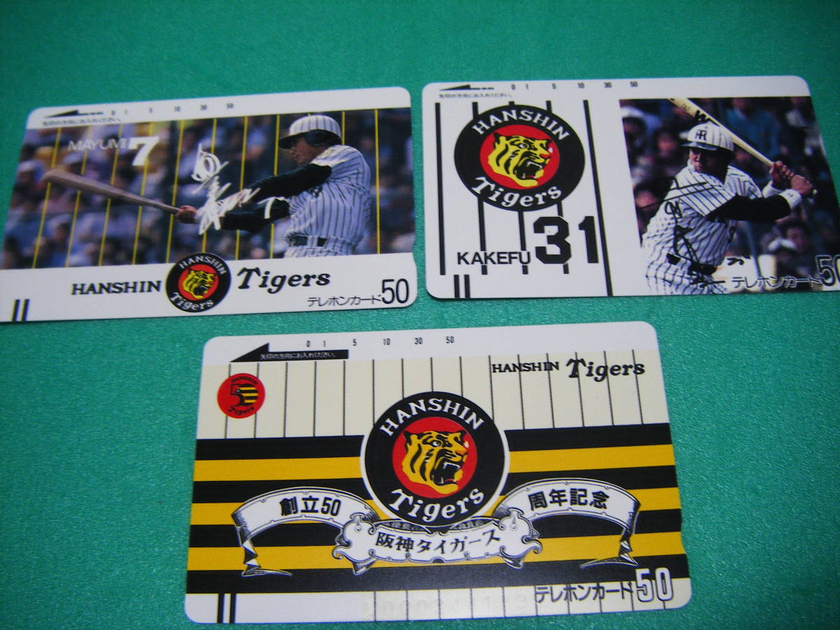 ☆ 阪神タイガース 50周年記念 掛布雅之 31 真弓明信 7 プロ野球 3枚 ☆ 未使用 テレホンカード 各50度数
