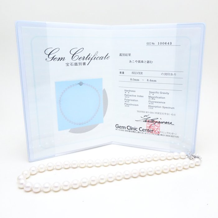 パール ネックレス 42.5cm あこや真珠8~8.4ミリ シルバー/74991【中古】