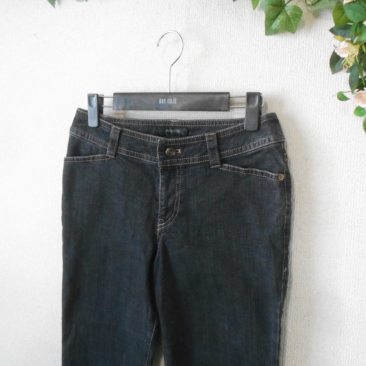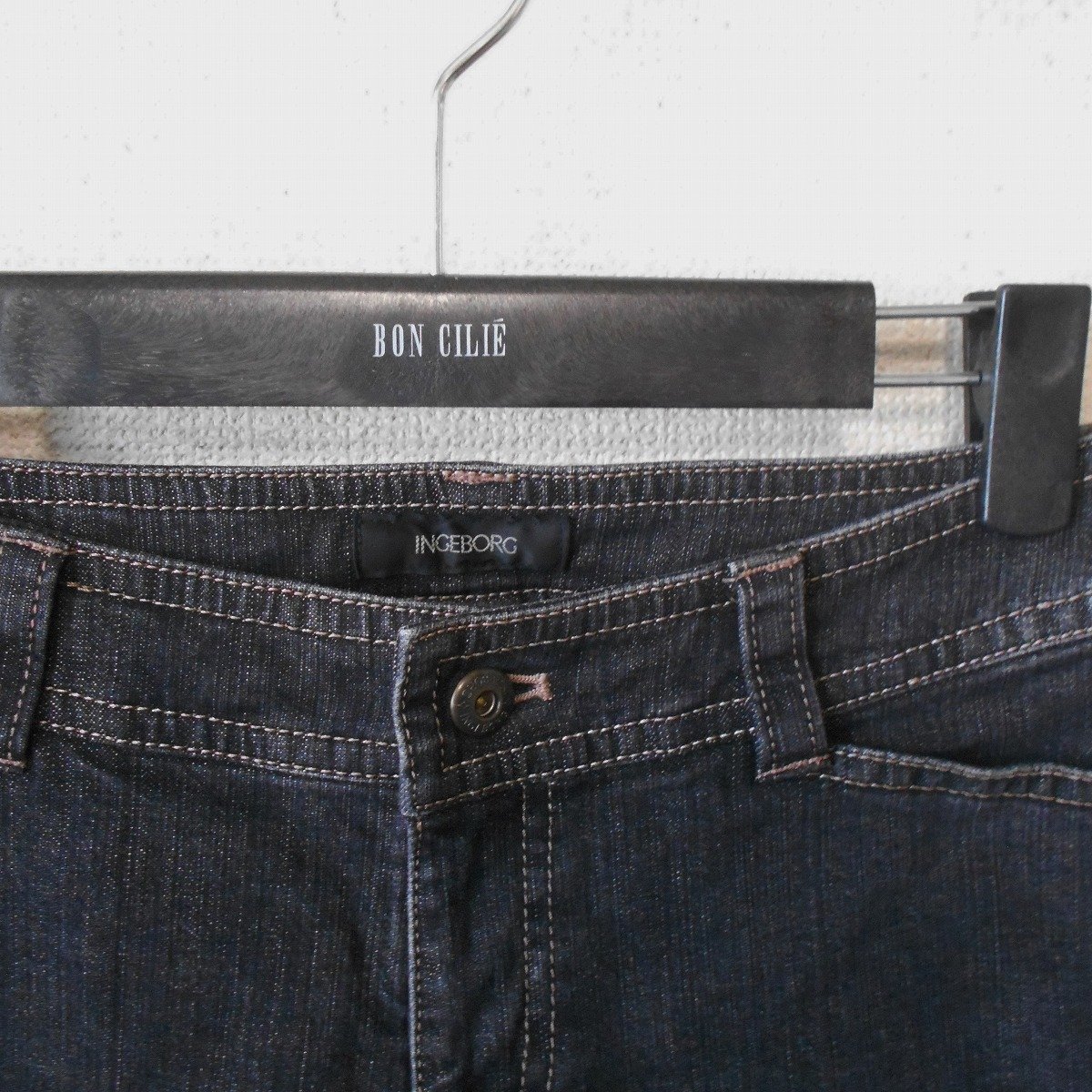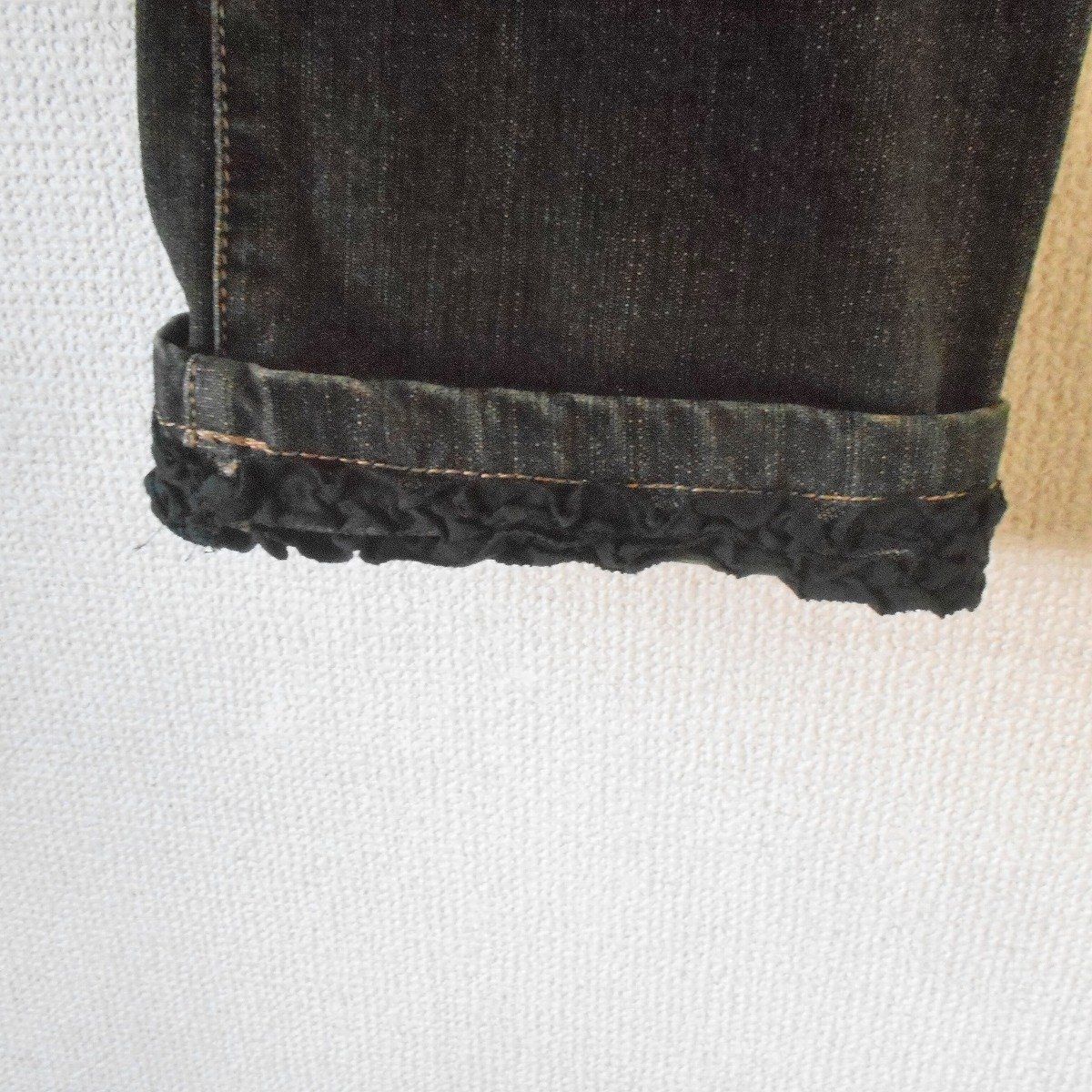 インゲボルグ INGEBORG クロップド パンツ ジーンズ 黒 デニム レディース 7 折返し フリル あり