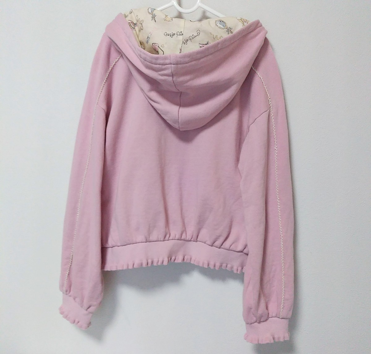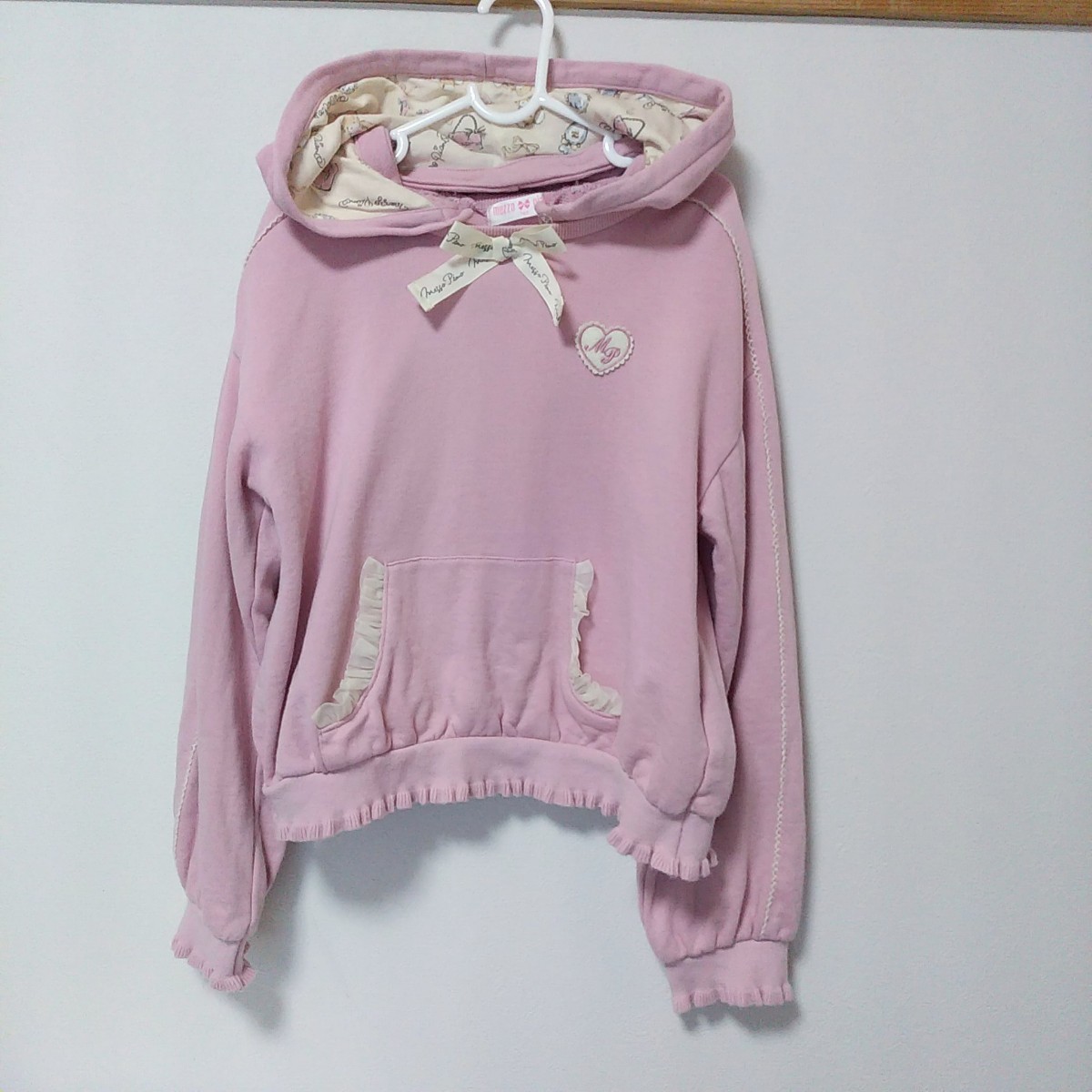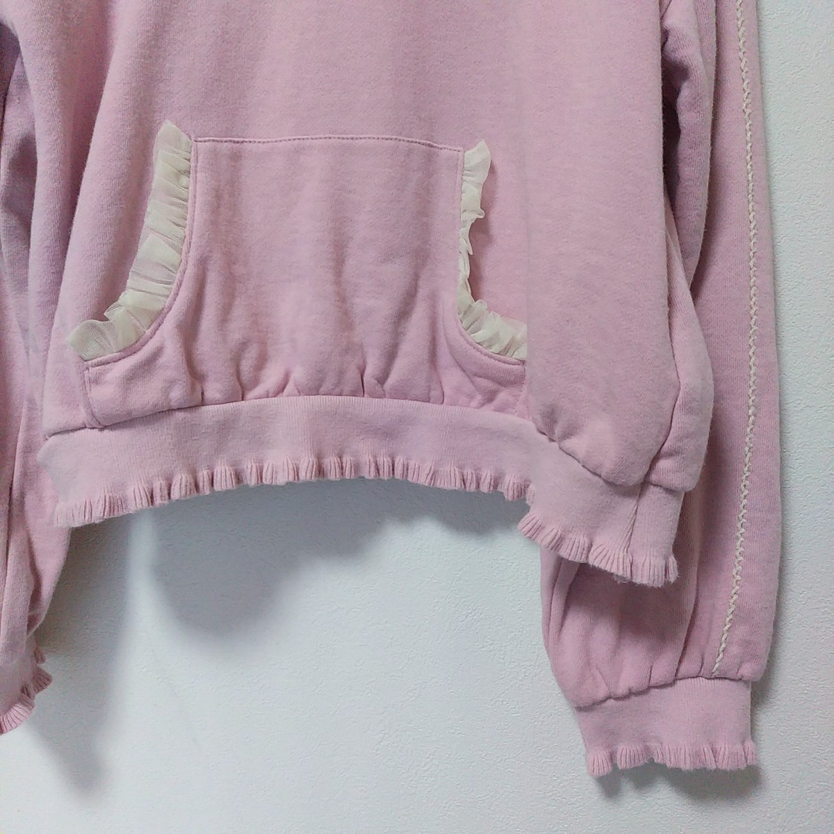 レースやフリル、ロゴリボンがお洒落なトレーナーです