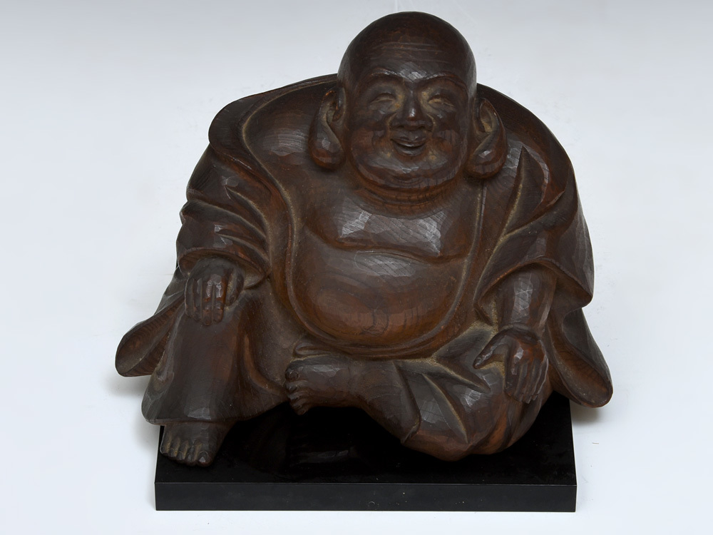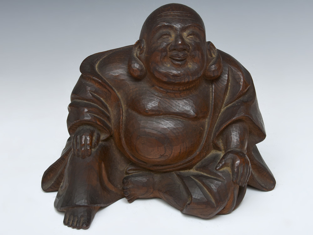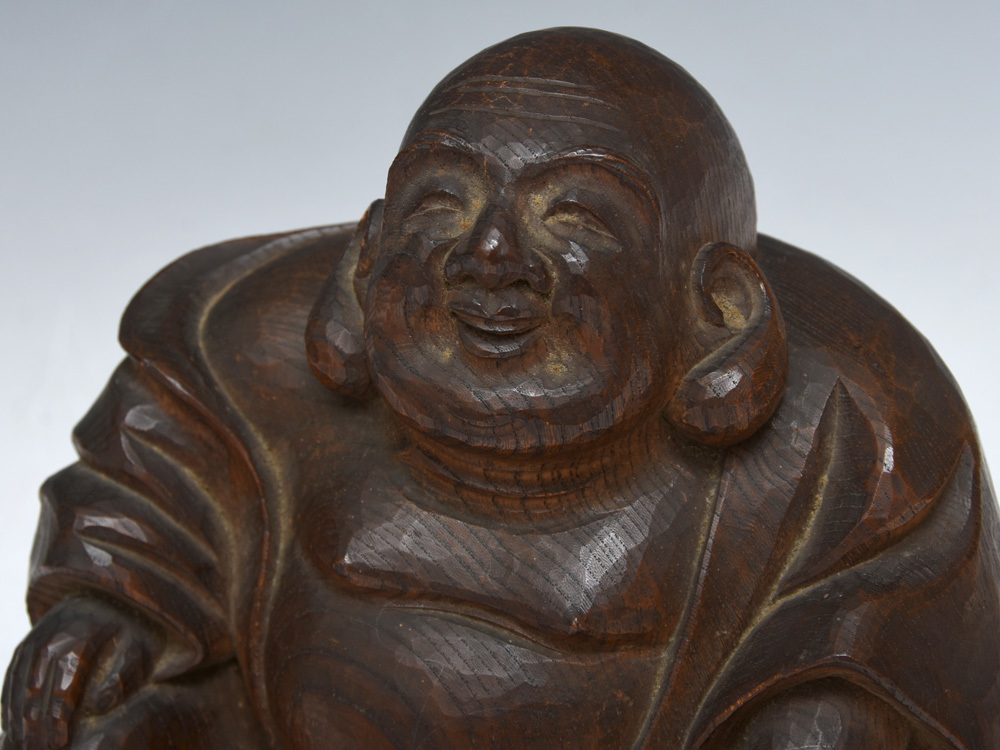 時代 木彫り 布袋像 木像 置物 重量1.3㎏ 七福神 一木 仏像 細密彫 一刀彫 天然木 彫刻 縁起物 木工芸 仏教美術 |