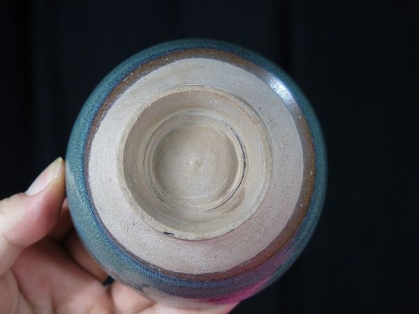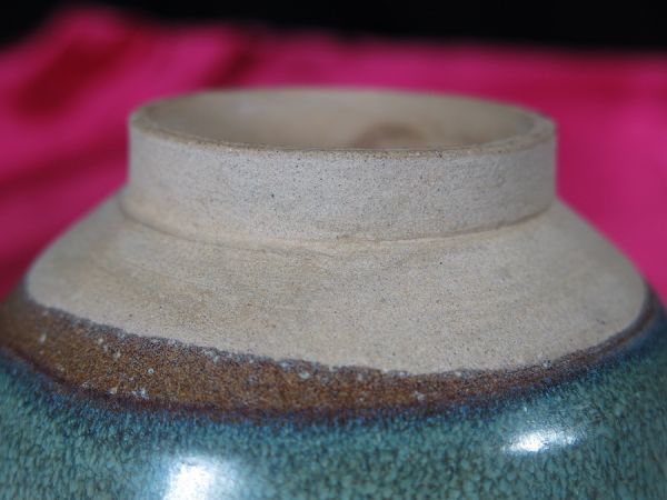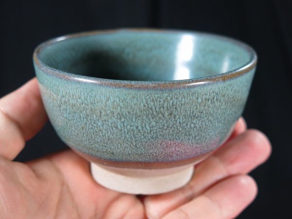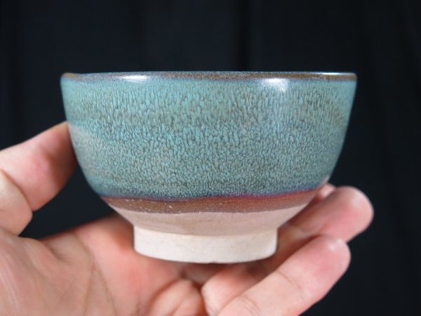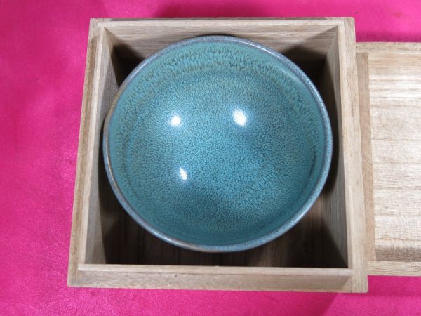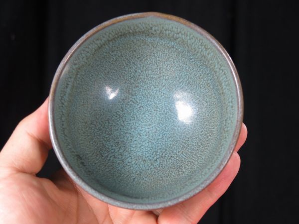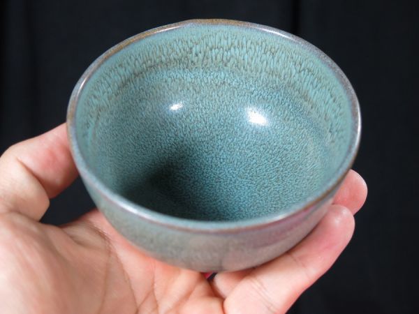 宋代建窯油滴天目茶碗 緑 遺跡発掘品 中国 です。     コレクション整理での 出品です。