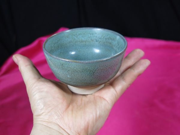 c 宋代建窯油滴天目茶碗 緑 遺跡発掘品 中国 / 副葬品 墳墓 シルクロード 明器 埋蔵文化財 青磁 天目 鈞窯