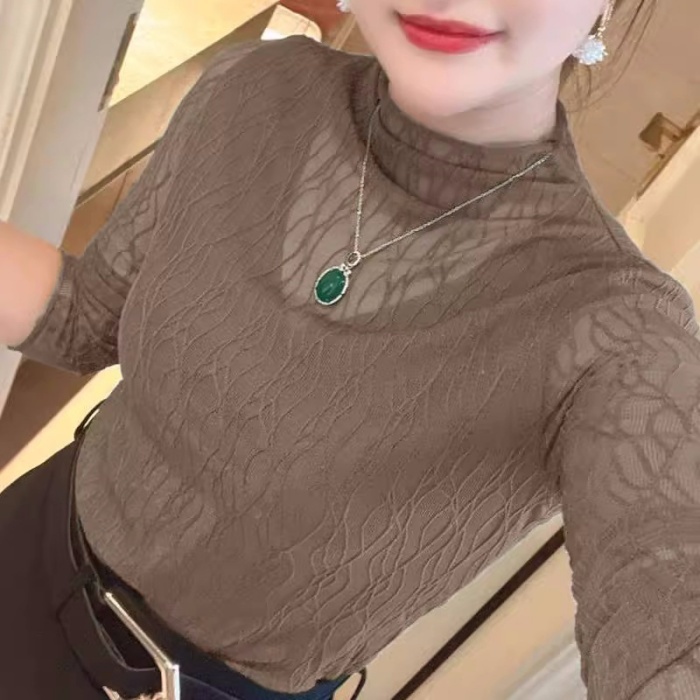 | 送料無料 ★即納★ 絶妙な透け感 シアートップス 総レース シースルー 肌見せ 重ね着 シアー トップス レディース★ブラウン/H | ||||