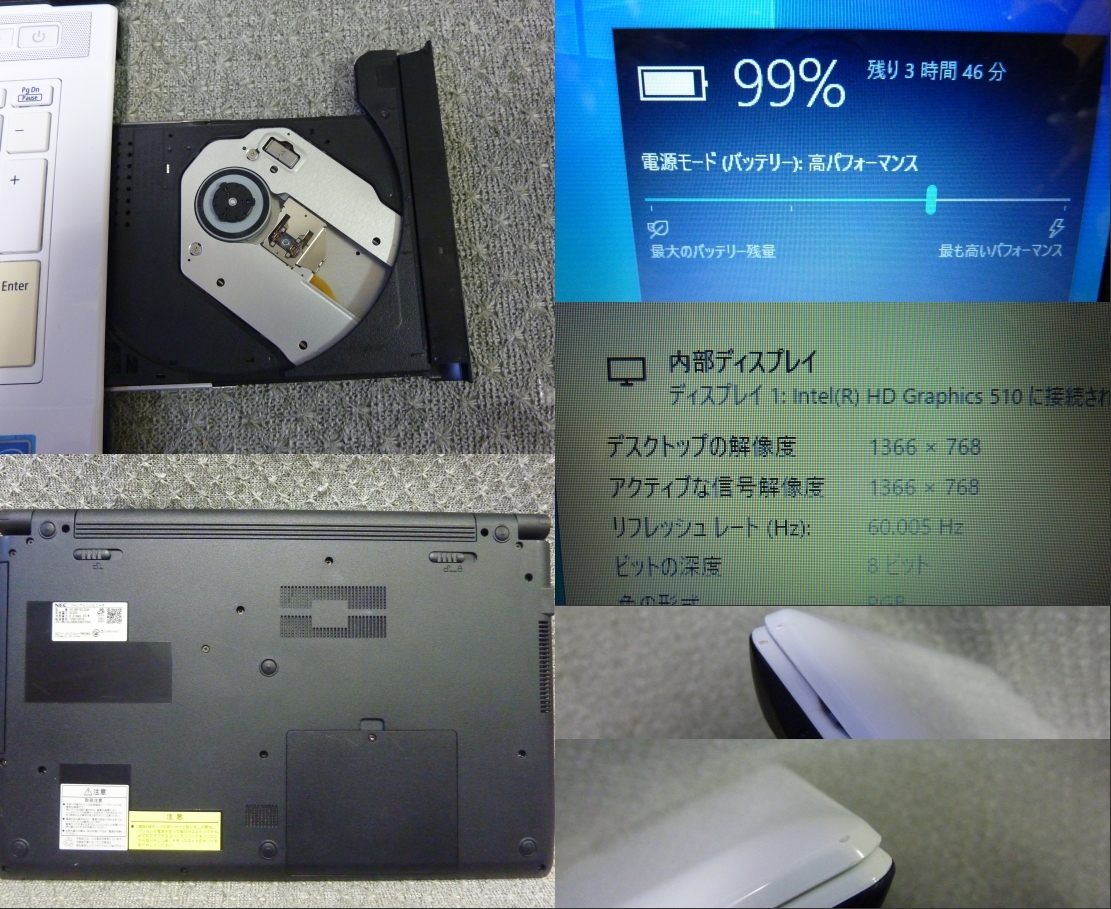 | 基本点検 | 記載以外の動作は未確認となります、保障なし。 通電→ok BIOS→ok (設定変更可) OS導入→ok ネット接続→ok 光学ドライブ読込→ok バッテリ→ バッテリが充電出来ます、単独使用が可の状態です。 駆動時間は計測しておりません、どの程度の時間が保つのか全く分かりません。 PC内蔵の内部電池及びバッテリーパックは消耗品の為、動作保証外です。 Windowsは起動し、簡単操作で問題ないと思います。快適に動作しています。 初期不良返品は商品到着日を含めて3日間お受けします。 |