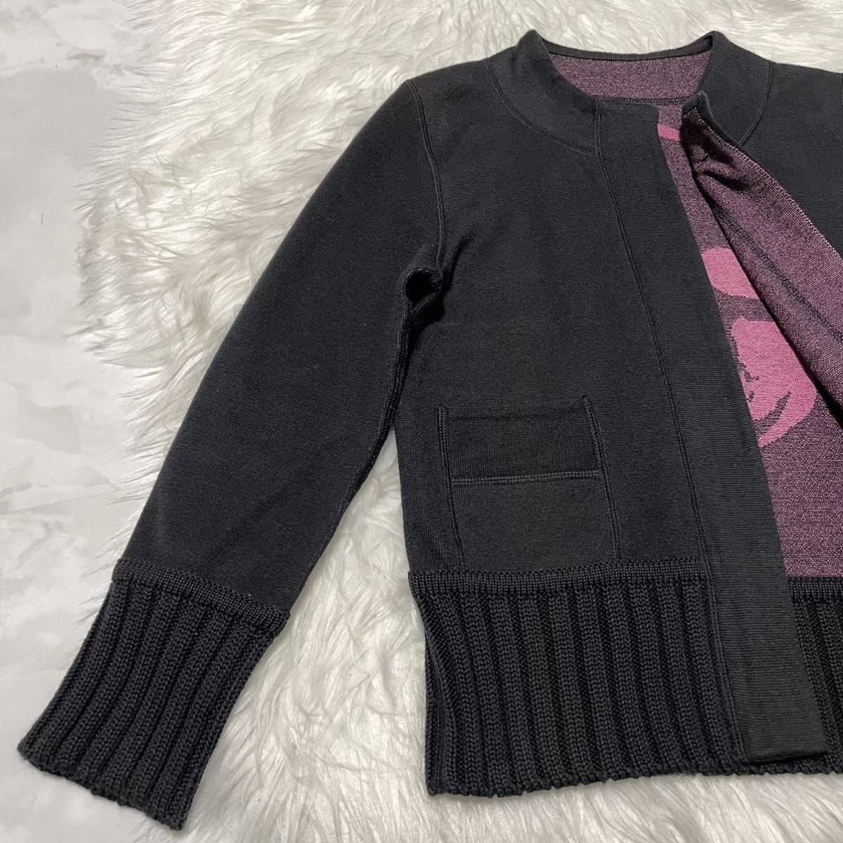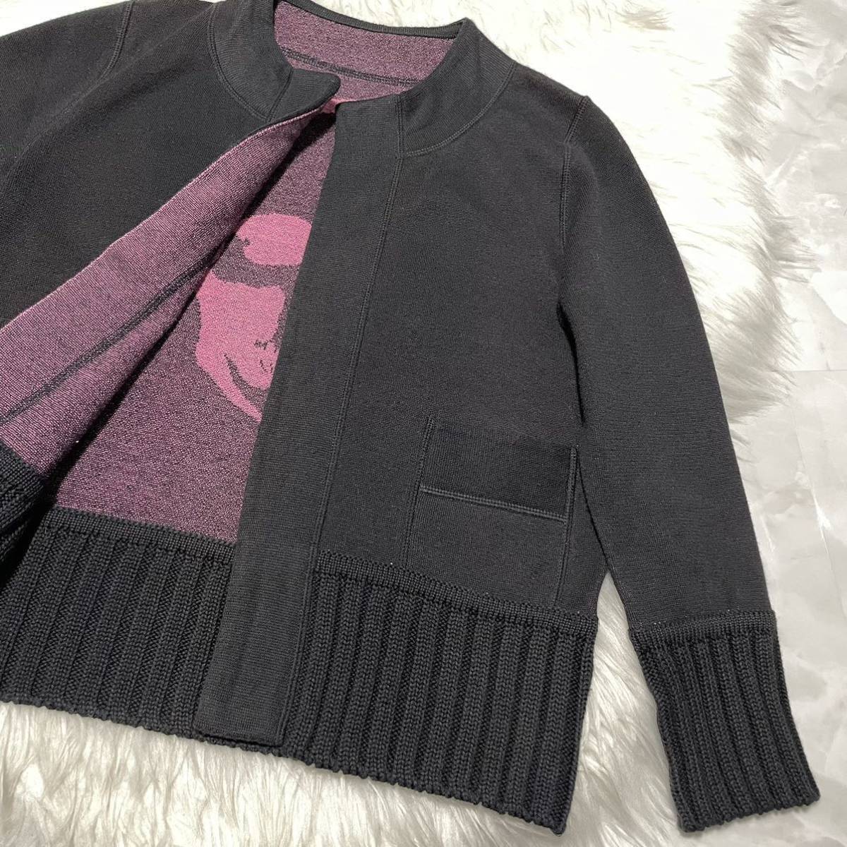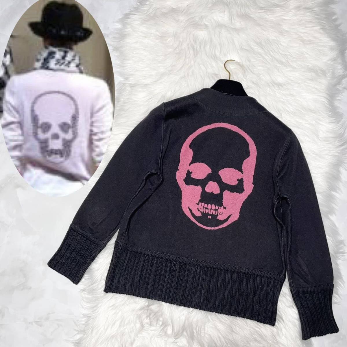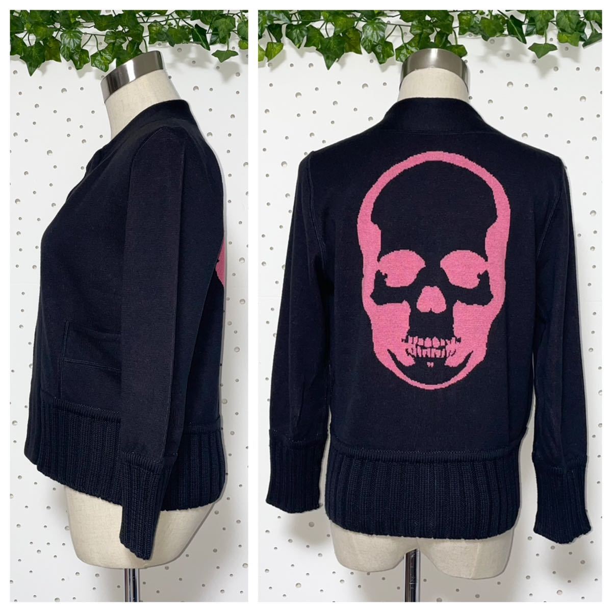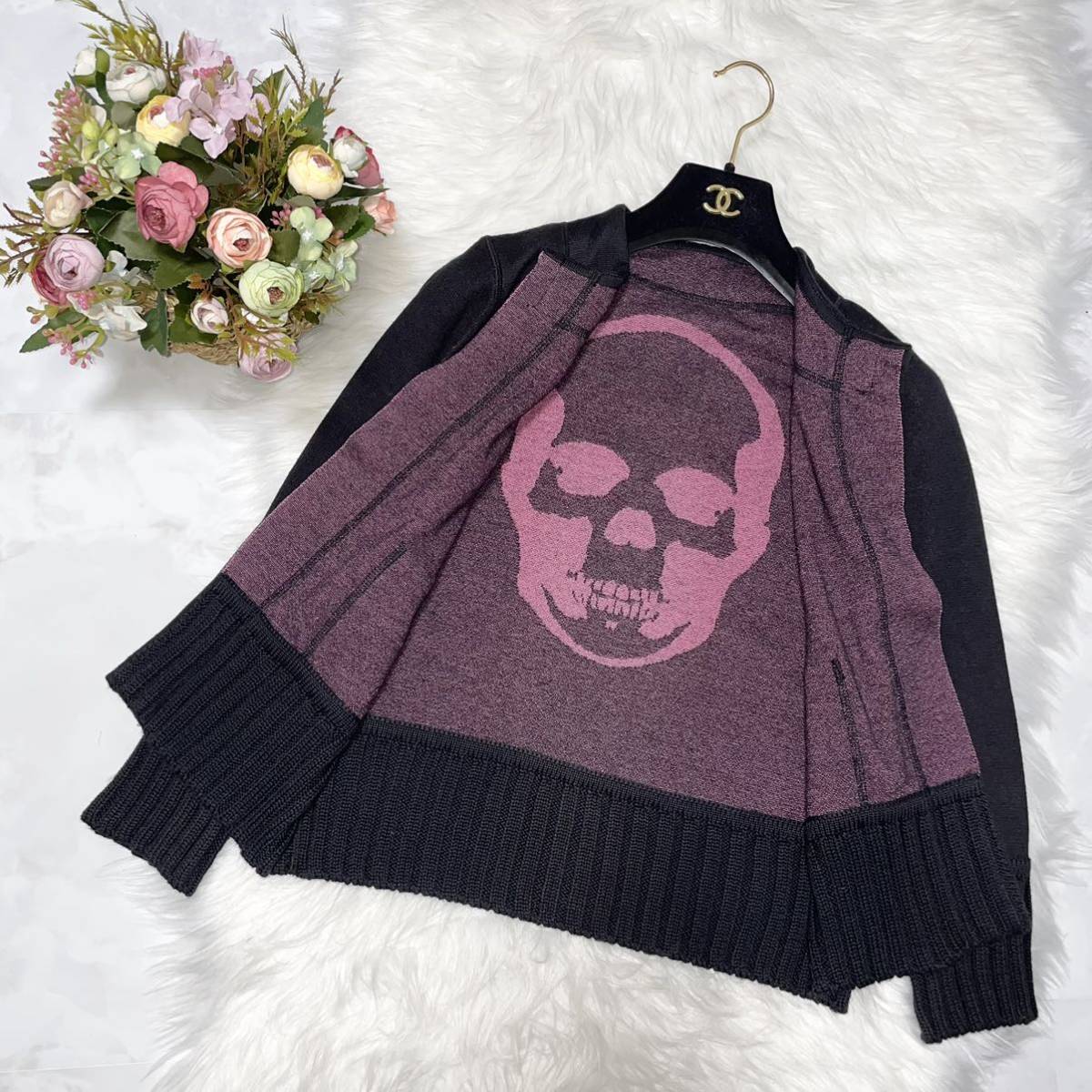 | 本物 ルシアンぺラフィネ 背面スカル カシミヤ混 ニット カーディガン ジャケット M ブラック×ピンク 黒×桃色 lucien pellat-finet | |||