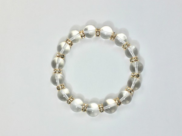 こちらは、12mm玉の水晶を使用した天然石ブレスレットです。石との間にはロンデルを挟み高級感を演出しています。シンプルなデザインですのでどんなコーディネートとも合わせ易いブレスレットです。石大きさは12mm玉です。内径約18cmです。(サイズ変更の場合は取引ナビにてご連絡をお願いします。) 数に限りがございますので気になる方はお早めにどうぞ。