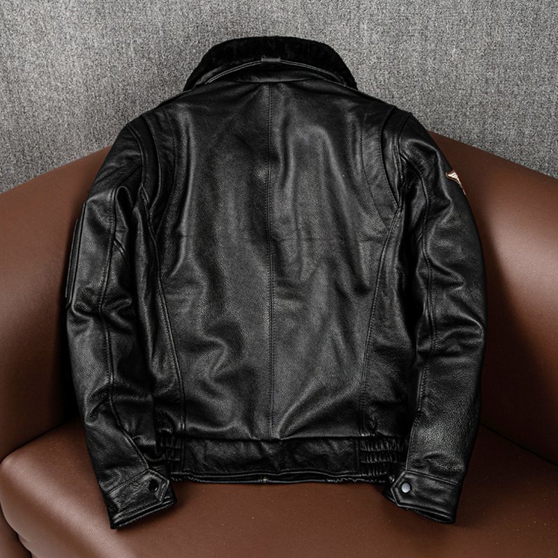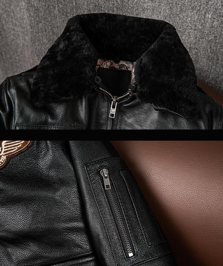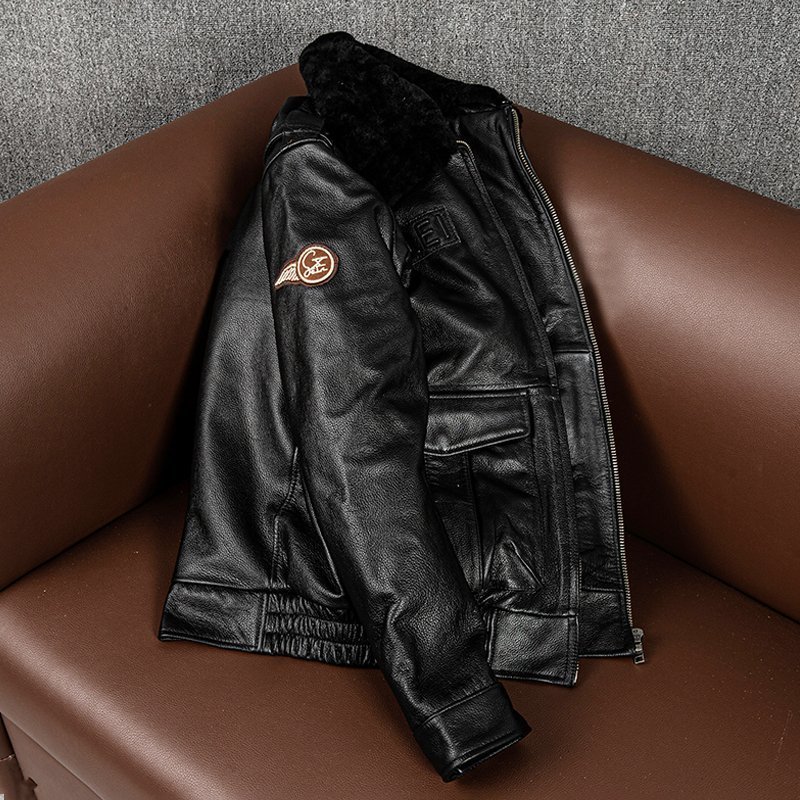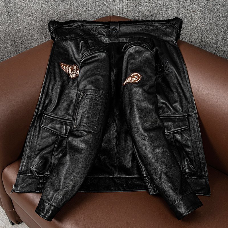 秋冬 上品 フライトジャケット メンズ ミリタリージャケット 空軍  牛革  本革 ウール襟 革ジャン S~5XL 黒