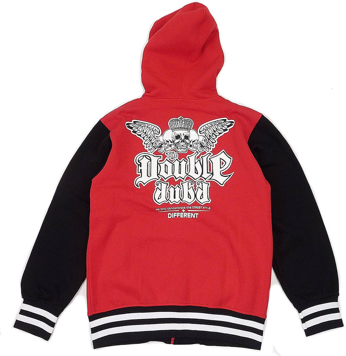 [並行輸入品] DOUBLE D ダブルディー エナメルパッチ スカルデザイン ジップアップ パーカー (L) (レッド×ブラック)