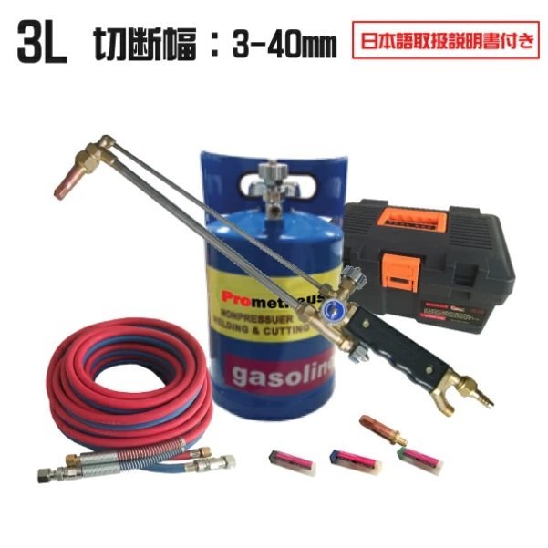【Prometheus正規品 】無加圧式ガソリン・酸素溶断システム プロメテウス溶断機セット 3L 切断幅3-40mm ★日本語説明書