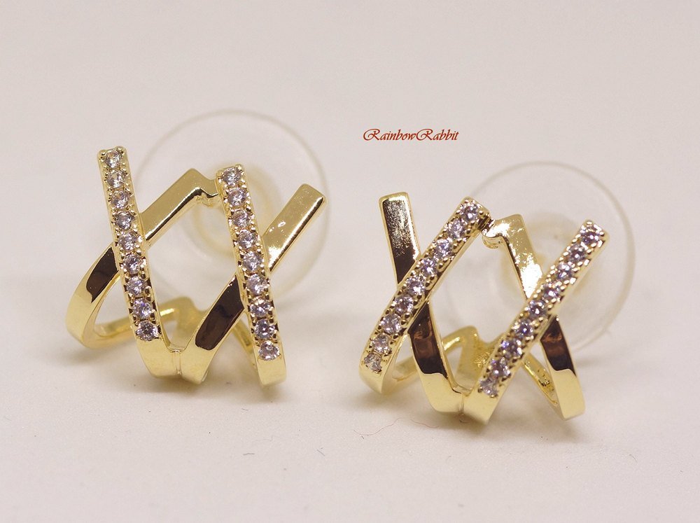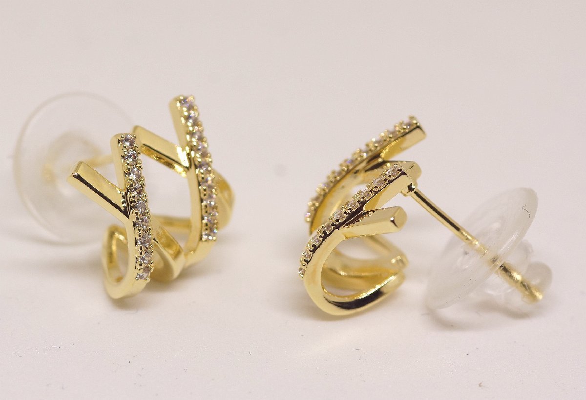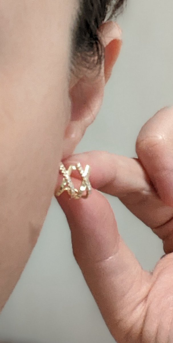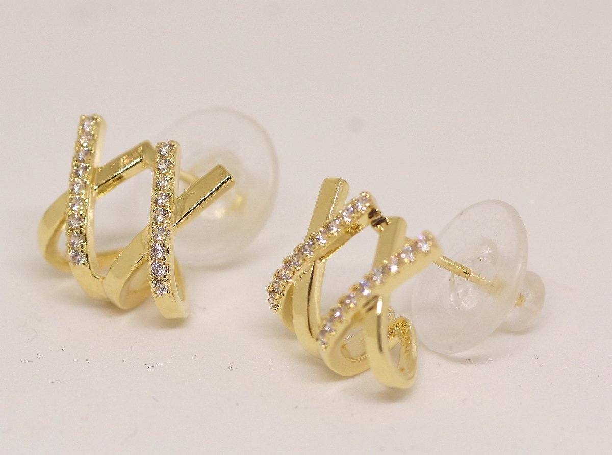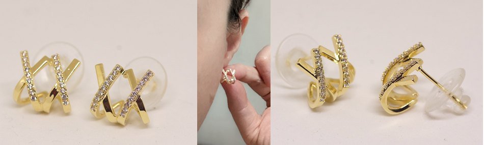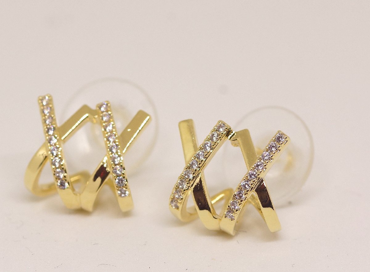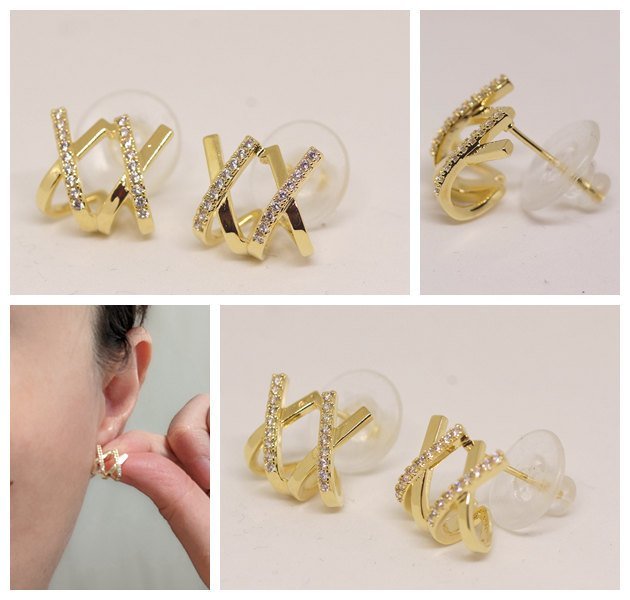 18K RGP ゴールド ダイヤ CZ XX模様 ピアス gp5589 |