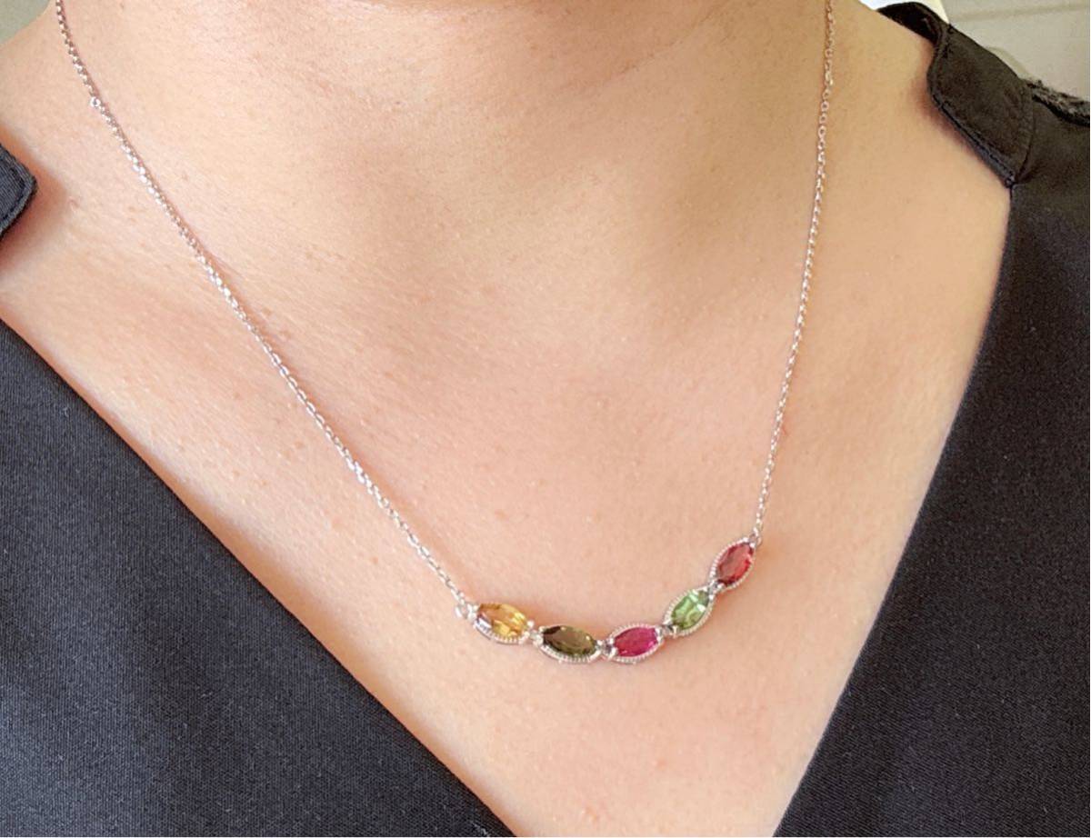 トルマリンには、様々な色彩の他に、もう1つ大きな特徴があります。この石の結晶は柱状をしていますが、両端の性質がプラスとマイナスに異なっており、それによって帯電(電気を帯びる)することです。同じような性質は水晶にも見られますが、トルマリンの方がこの性質が強く、和名では「電気石」と呼ばれています。トルマリン自体が発電したり、電気を通すわけではありません。何もしなければ、ただの石ですが、こすったり(摩擦)熱を加えると帯電し、静電気(マイナスイオン)を発生するといわれています。そのため、トルマリンのこの性質を活かすのであれば、ぜひ肌に直接触れるネックレスとして身に着けることをおすすめ致します。