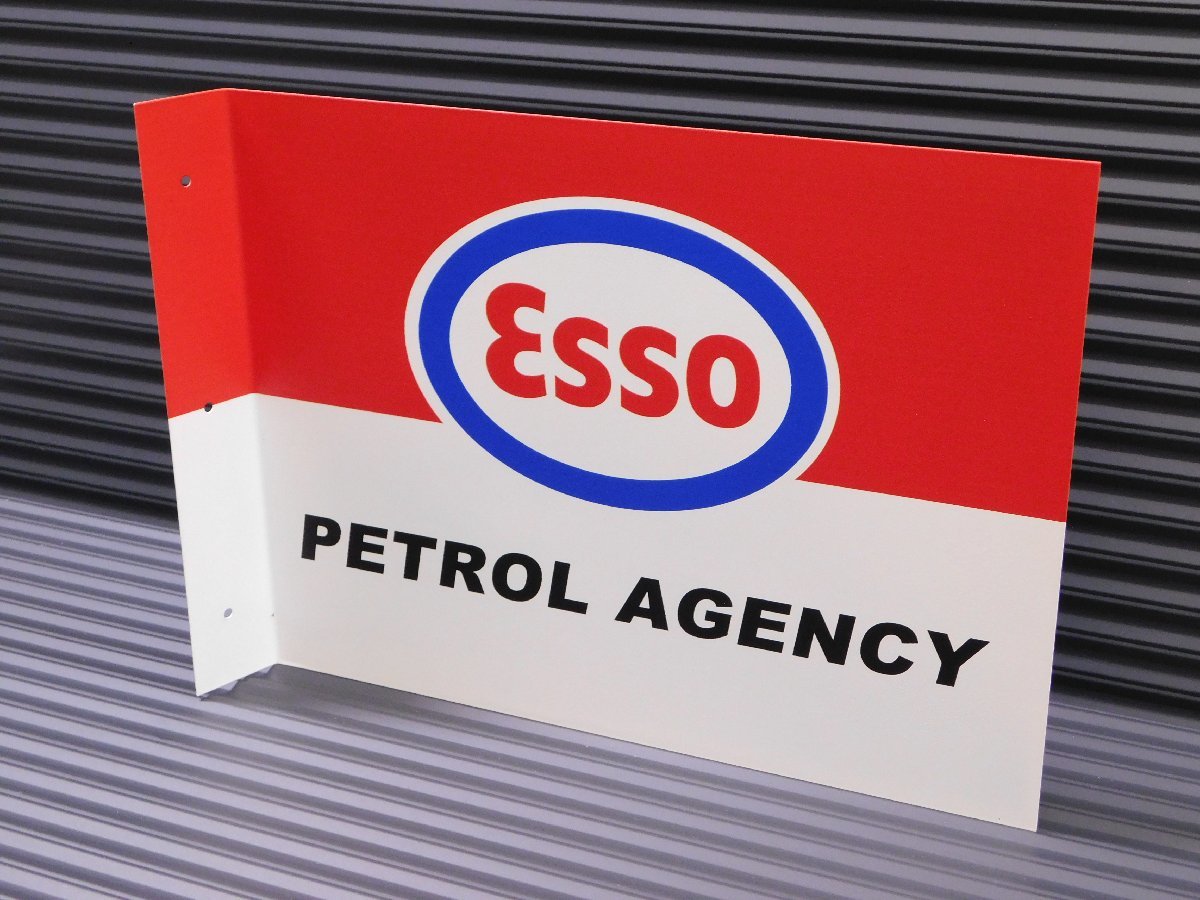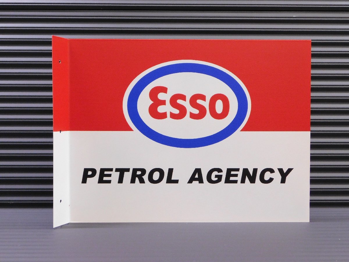【ESSO・エッソ】※《フランジメタルサイン・両面プリント》 アメリカン雑貨 ブリキ看板 ガレージ