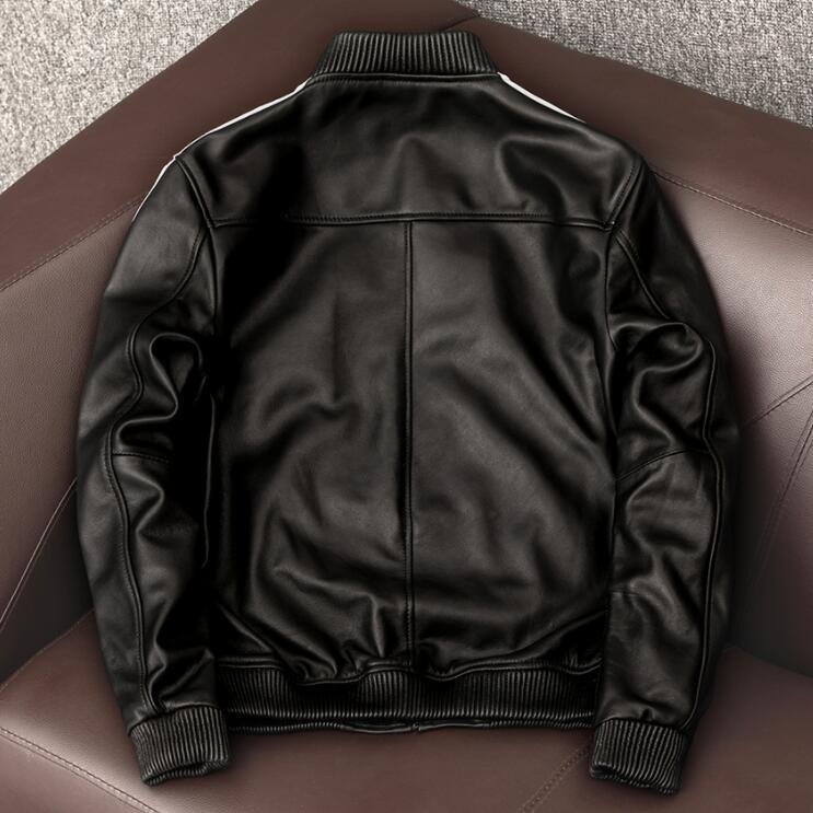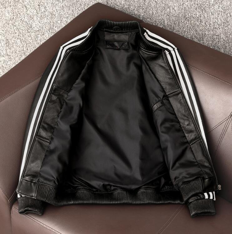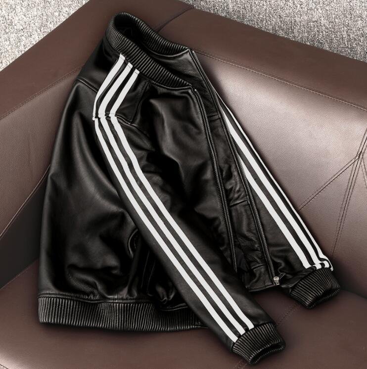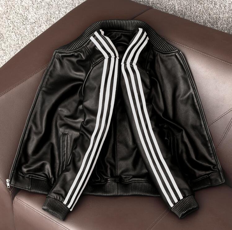 レザージャケット 上品 本革 羊革 サイドライン ライダースジャケット 野球服 革ジャン S~4XL 黒
