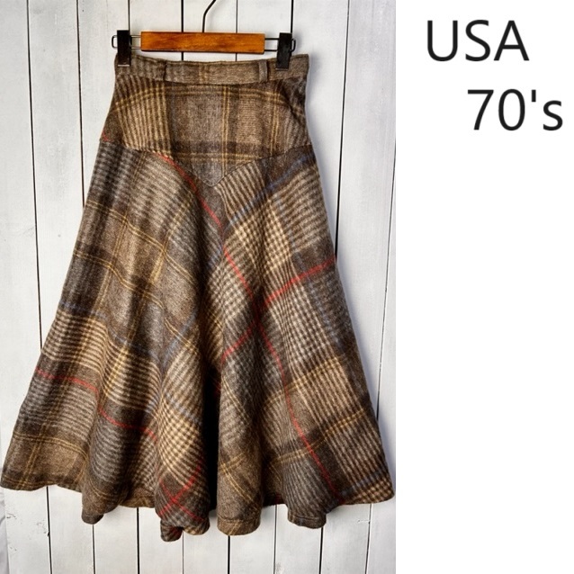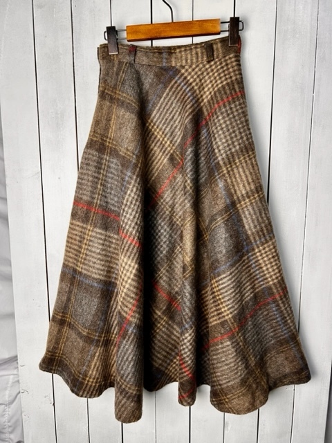 #アメリカ古着#レトロ#ヴィンテージ#USA古着#60年代#70年代#80年代#60s#70s#80s#レトロモダン#古着女子#フルジョ#ロングスカート#フレア#ロング#レトロ#スカート#ウール#チェック柄#秋冬春#チェック柄#ウール#起毛
