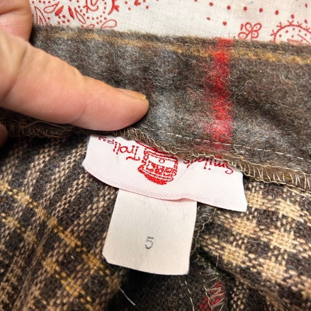 ●商品説明・・・アメリカ古着になります。70年代頃のオールド・ヴィンテージのモヘアが入っているような質感・起毛感のある秋冬向けのウール系生地の大きくフレアになった裾にボリューム感のあるフレアロングスカートです。薄ダークブラウンの同系色の暖かみのあるチェック柄です。素材表記などは無いですが、おそらくウール・アクリル・ポリやモヘア(入っているかは不明)などのミックス混紡かと思われ、表部分は起毛感のある生地感です。質感的には柔らかなウール生地のような感じの一枚生地で、中厚程度の分厚すぎない軽量で柔らかな生地で、秋冬春先と幅広いシーズン着用いただける一着で、レイヤード使いもしていただけます。USAの5表記で、XS~S程度の小さめなサイズ感かと思います。