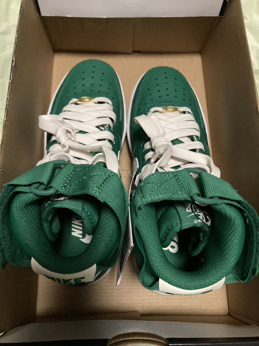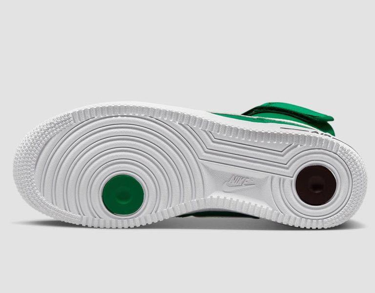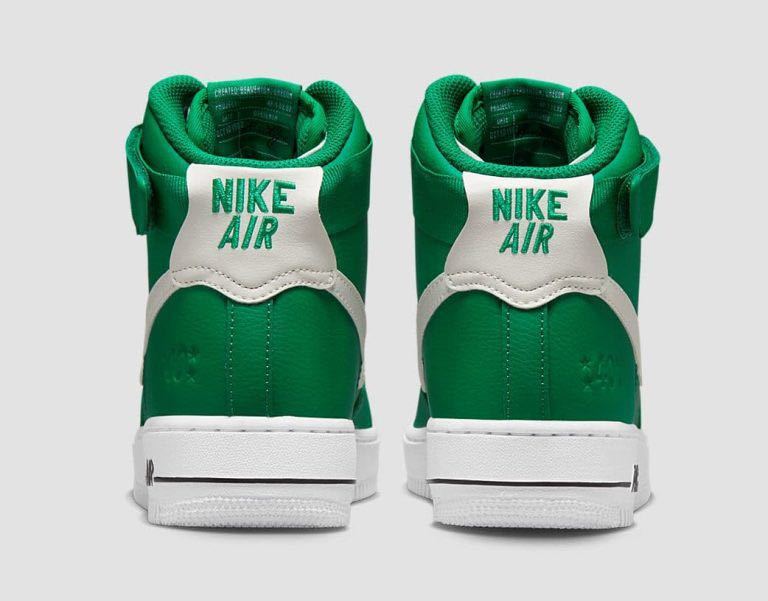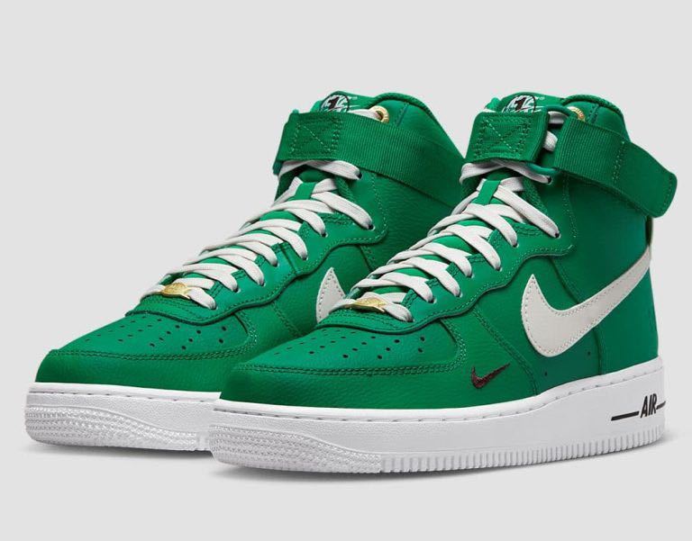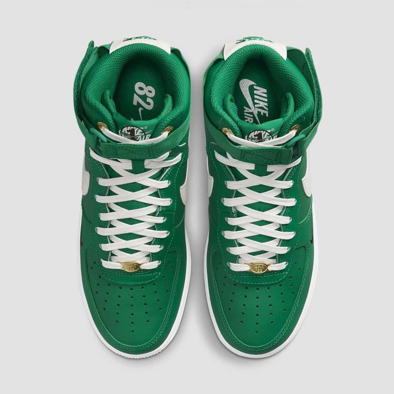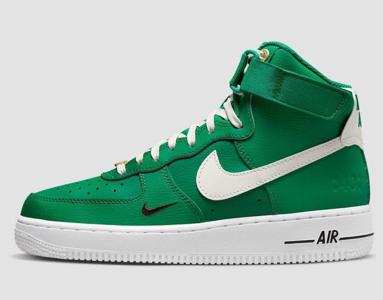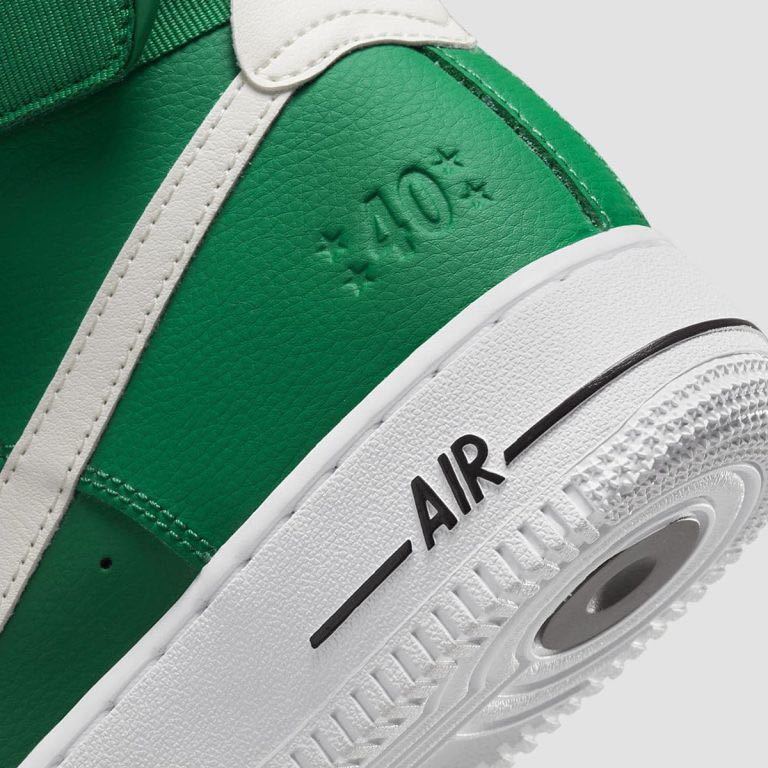 エア フォース 1 販売から40周年の一環として様々なモデルがリリース予定、今回40周年にふさわしいデザインをあしらったHIGHモデルが登場予定。グリーンのレザーアッパーにホワイトのスウッシュ、アンクルストラップをあしらい、スペシャルなタンタグ、ゴージャス感あるメタリックゴールドのデュブレとアイレットを配しヒールには40周年を祝う40のロゴが施されています。