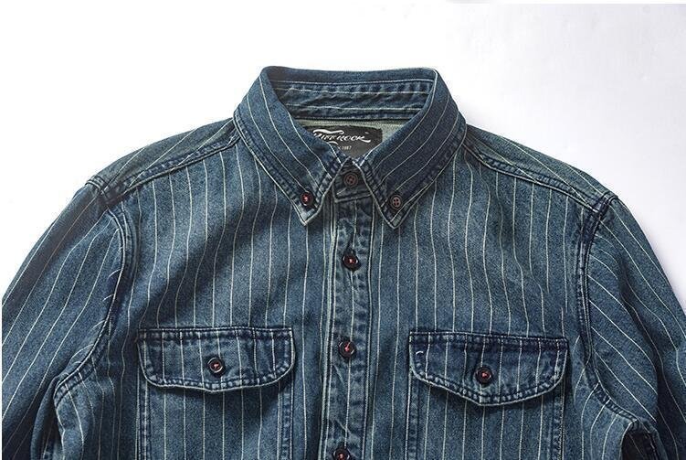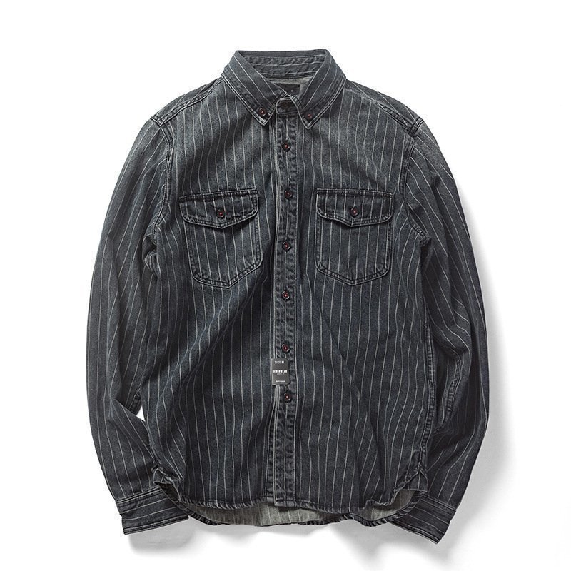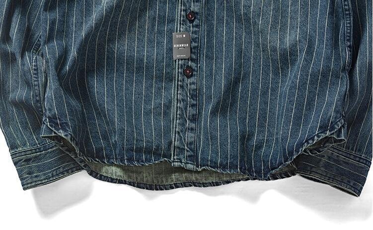アメカジ デニムジャケット ストライプ デニムシャツ ワークジャケット メンズ ヴィンテージ加工 綿100% ★2色選択可/S~2XLサイズ