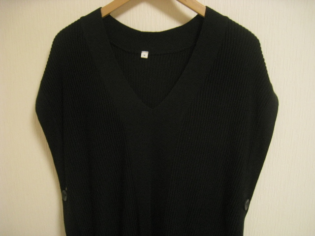 ニットベスト Vネック サイドボタン 黒 ブラック サイズM