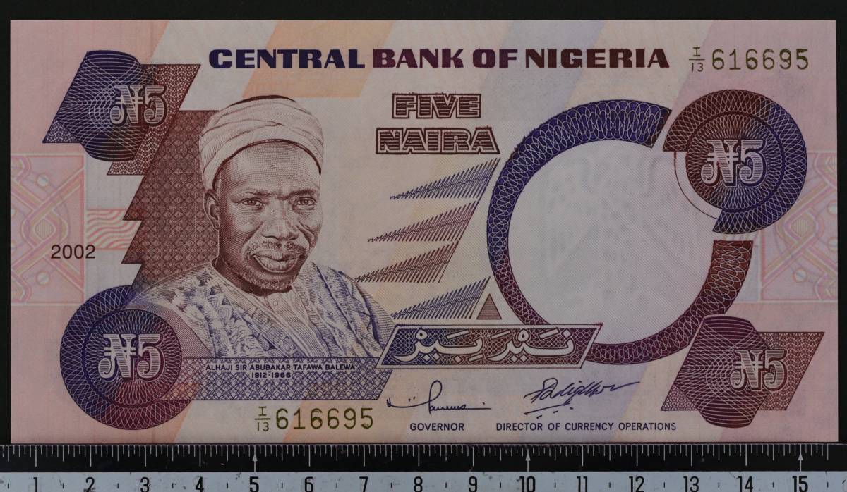 外国紙幣 ナイジェリア 2002年 未使用 5ナイラ