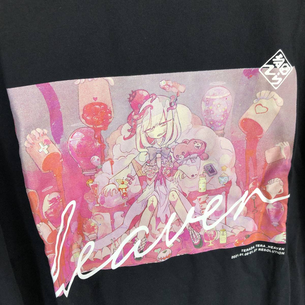 寺田てら 長袖 ロングTシャツ 初個展「レゾ」 ブラック ヘブン 「heven」 コットン