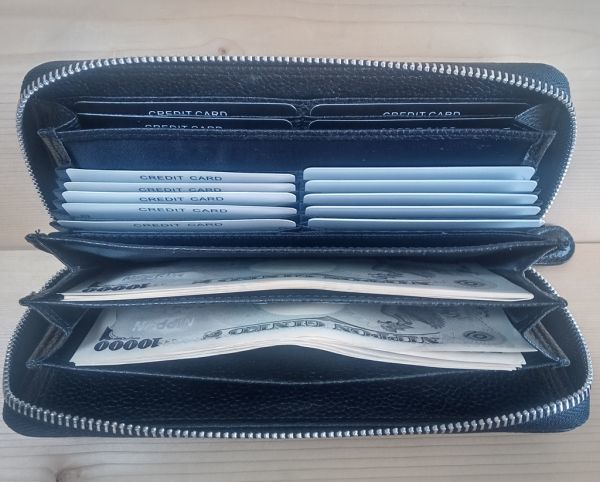 長財布 本革 高級牛革使用 ラウンドファスナー 多機能 大容量 カード入17枚 |