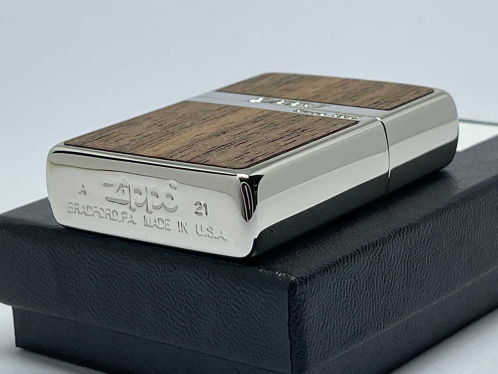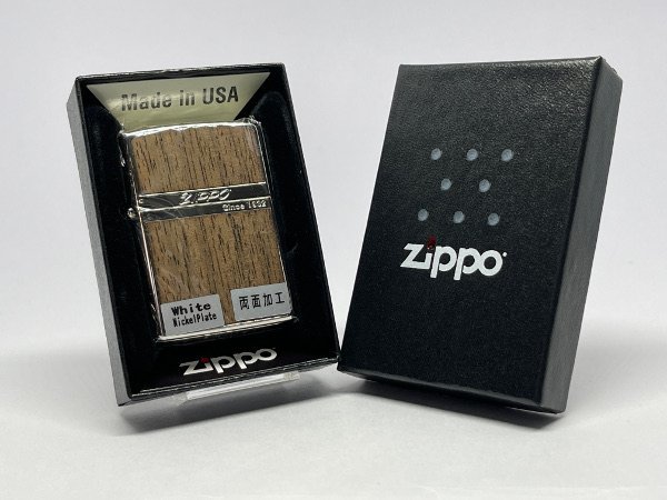 | ZIPPO[ジッポー]両面加工 Wood Series WN-Wood ライト ウッドプレート貼り ホワイトニッケル | |||||||||||