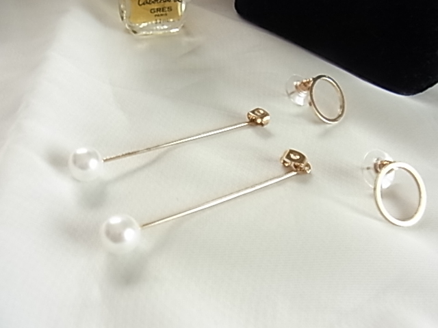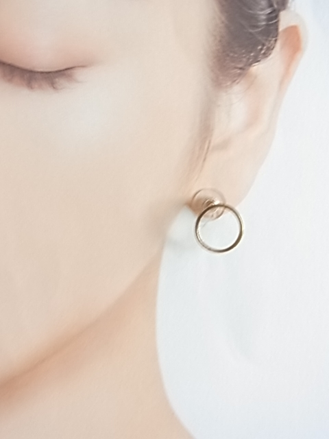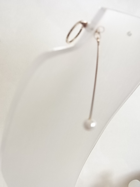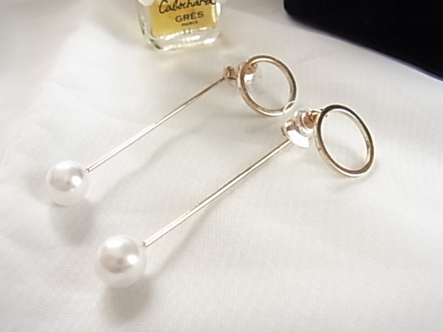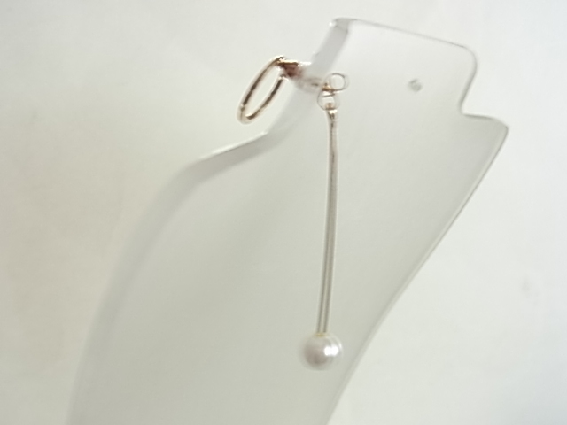 イミテーションパールが1粒のバッグキャッチ フープ リング 輪っか 輪とイミパールが素敵 パールが揺れる デザインピアス★