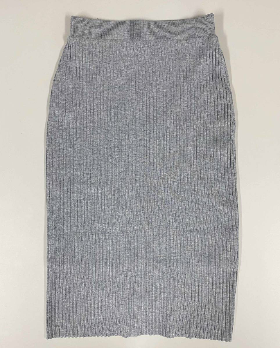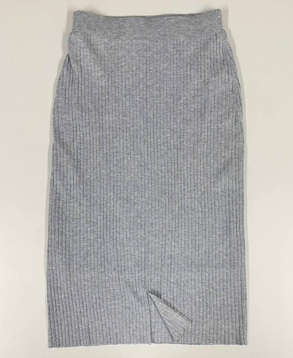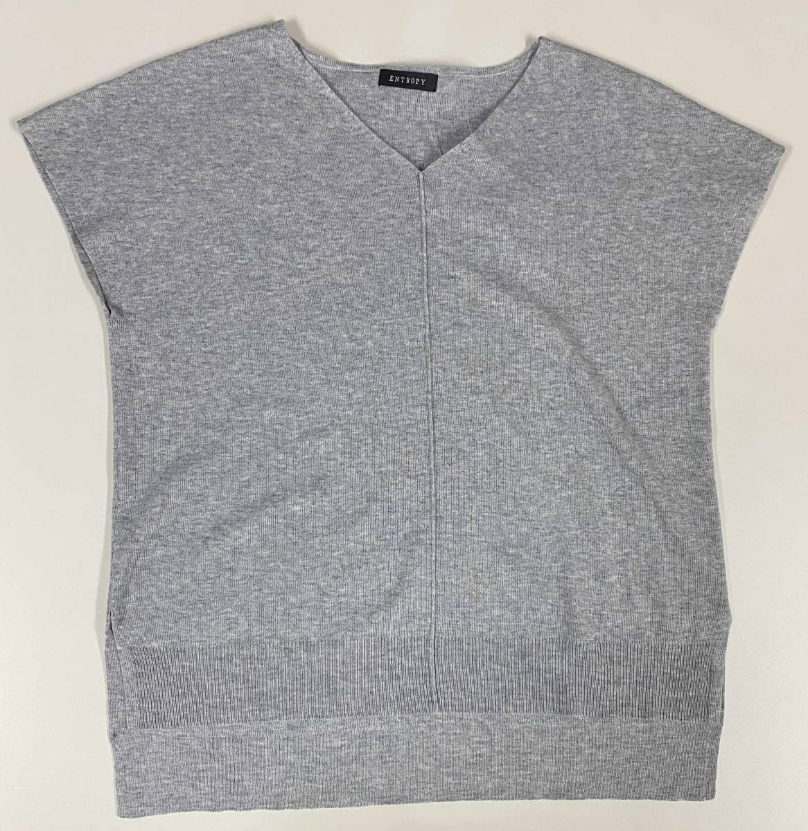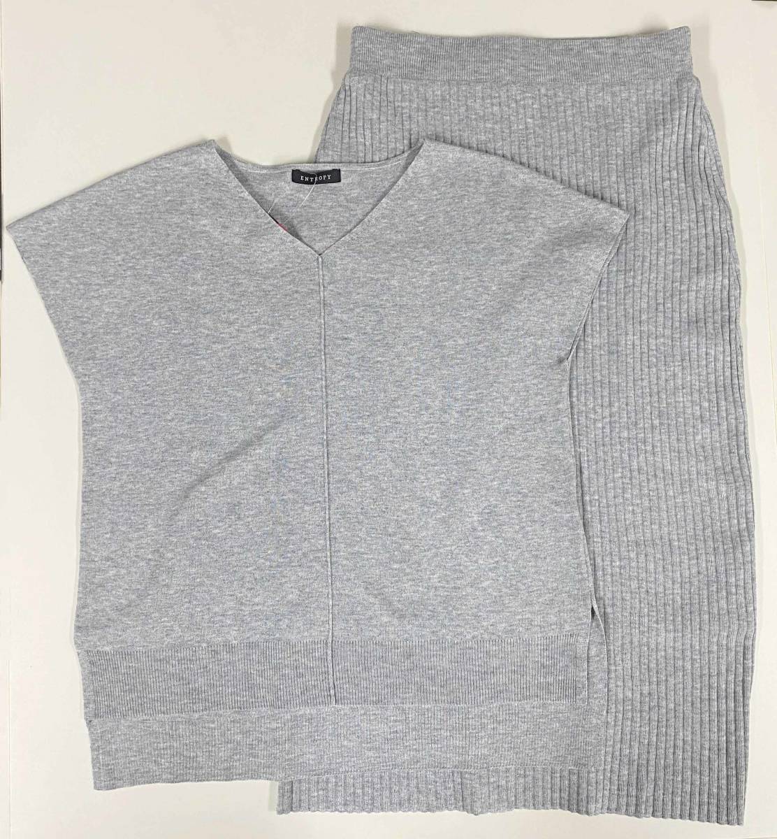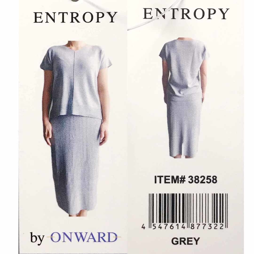 新品 M ★ ENTROPY BY オンワード ニット セットアップ グレー ロングスカート リブ 上下 セット トップス フレンチスリーブ コストコ