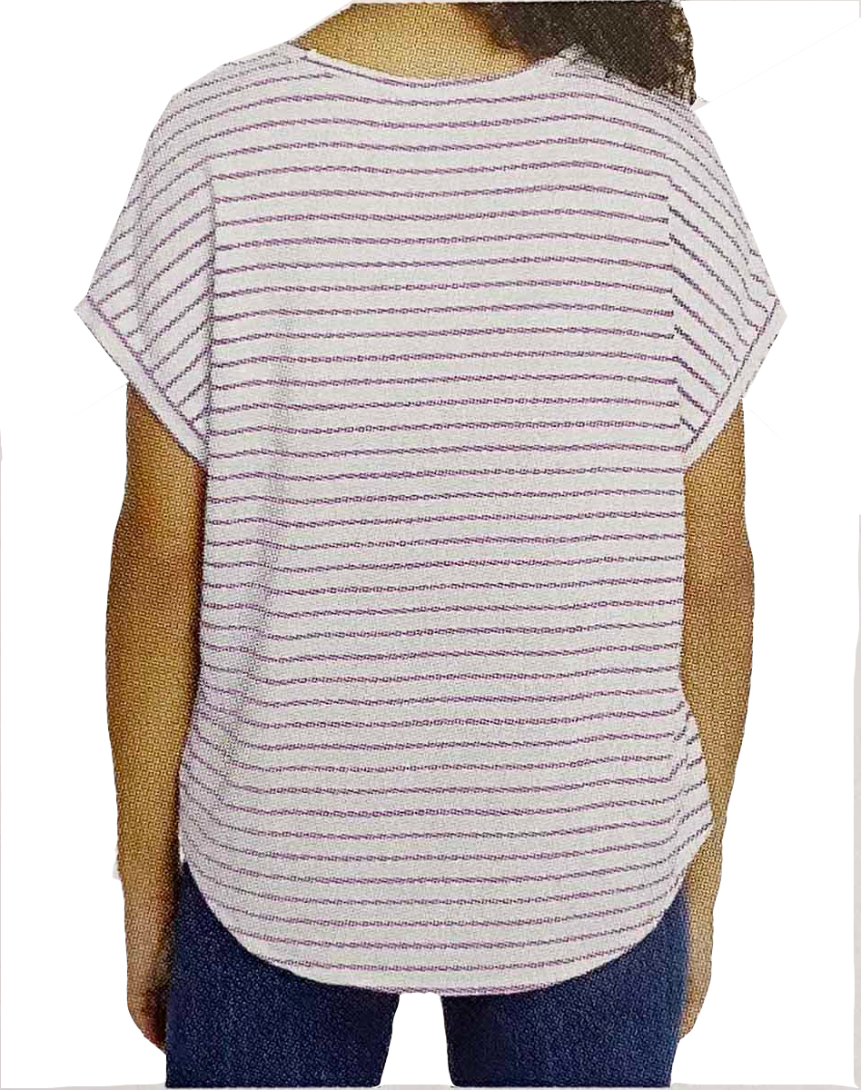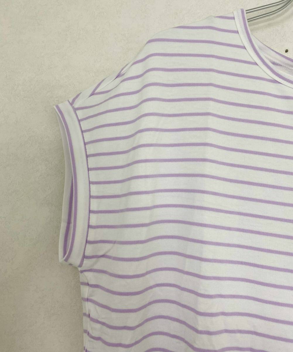 新品 M ★ コストコ BUFFALO レディース 半袖 Tシャツ ストライプ ホワイト パープル US-S スーパーソフト ゆったり 大きめ オーバーサイズ