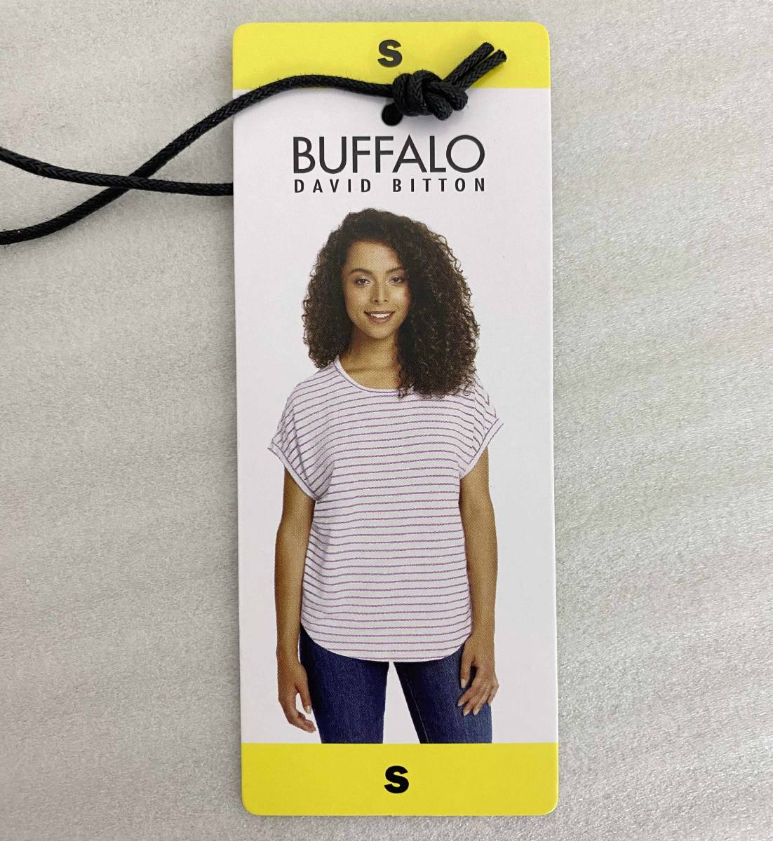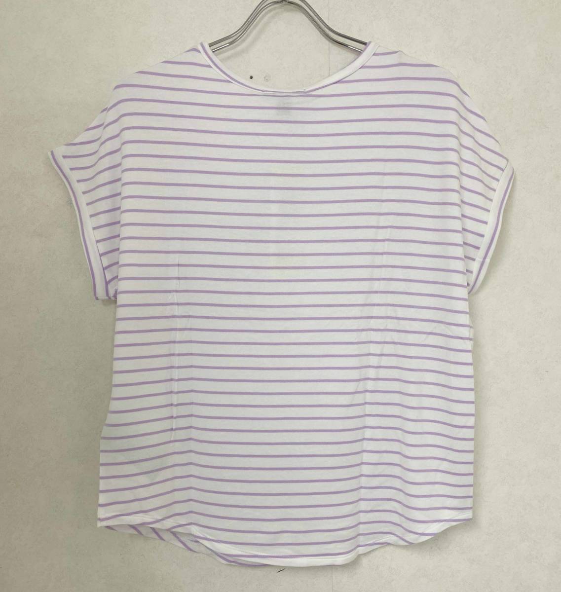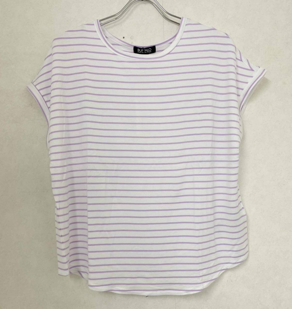 新品 M ★ コストコ BUFFALO レディース 半袖 Tシャツ ストライプ ホワイト パープル US-S