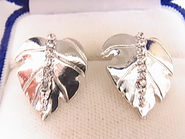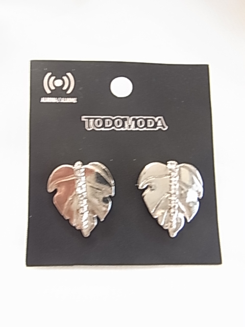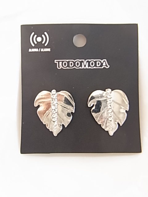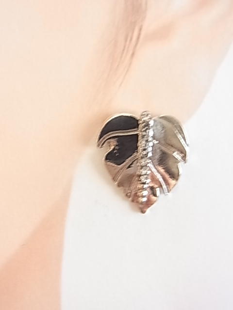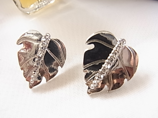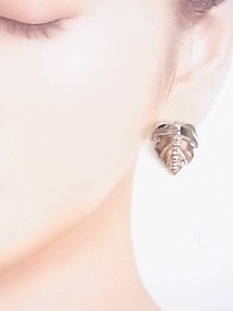 未使用品 TODOMODA 銀色 シルバーカラーのリーフデザインにラインストーン付でキラキラ輝く モンステラハワイアン調 美しいピアス♪