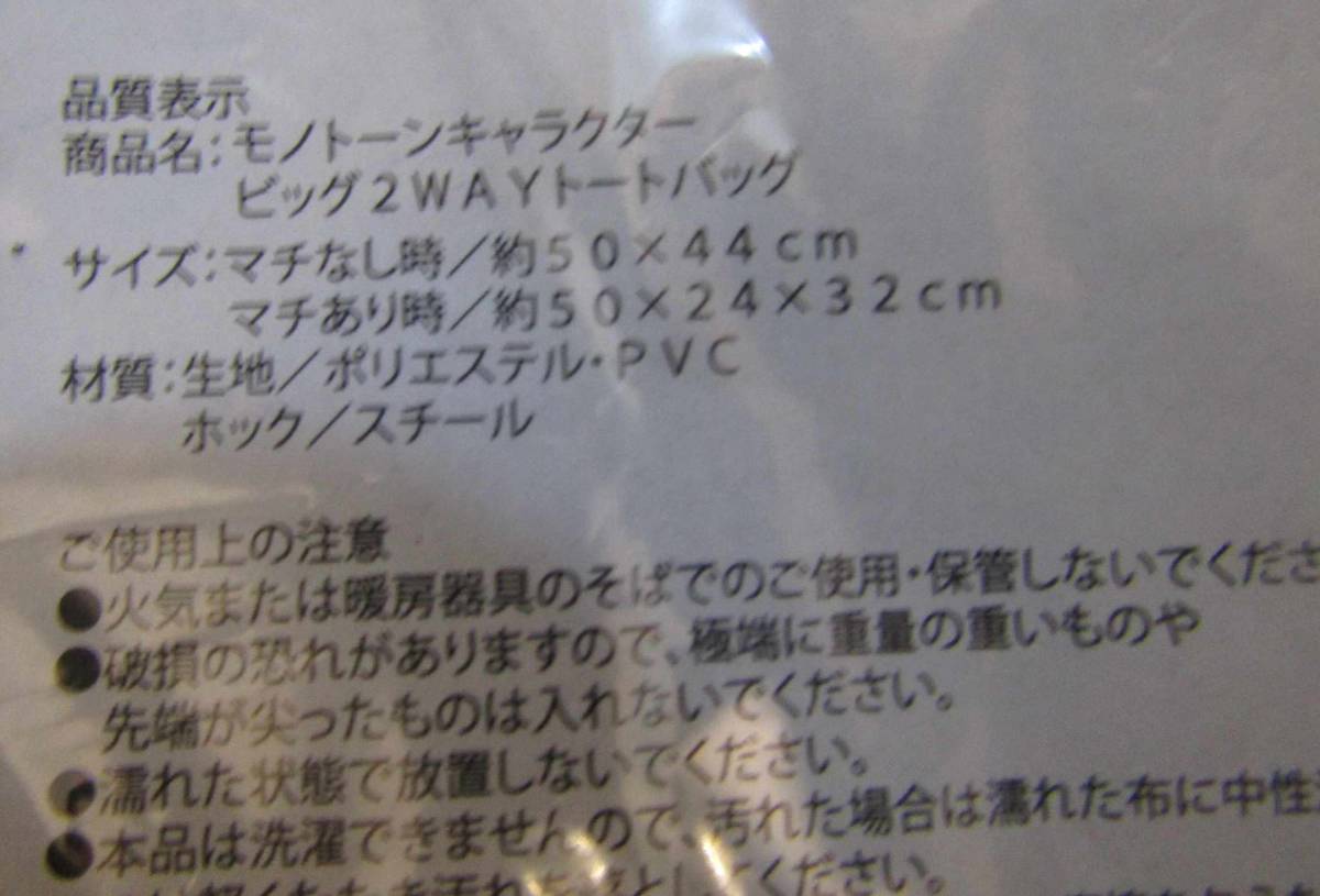 商品名:モノトーンキャラクター ビッグ2WAYトートバッグ