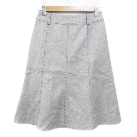 ボールジー BALLSEY トゥモローランド フレアスカート ミモレ丈 ウール 総柄 36 グレー ベージュ /FF47 レディース