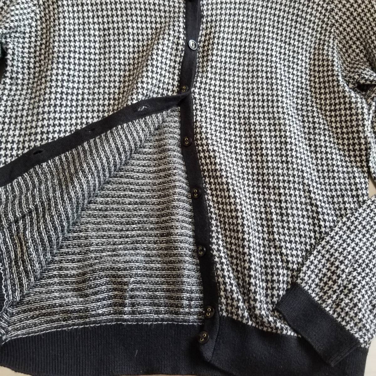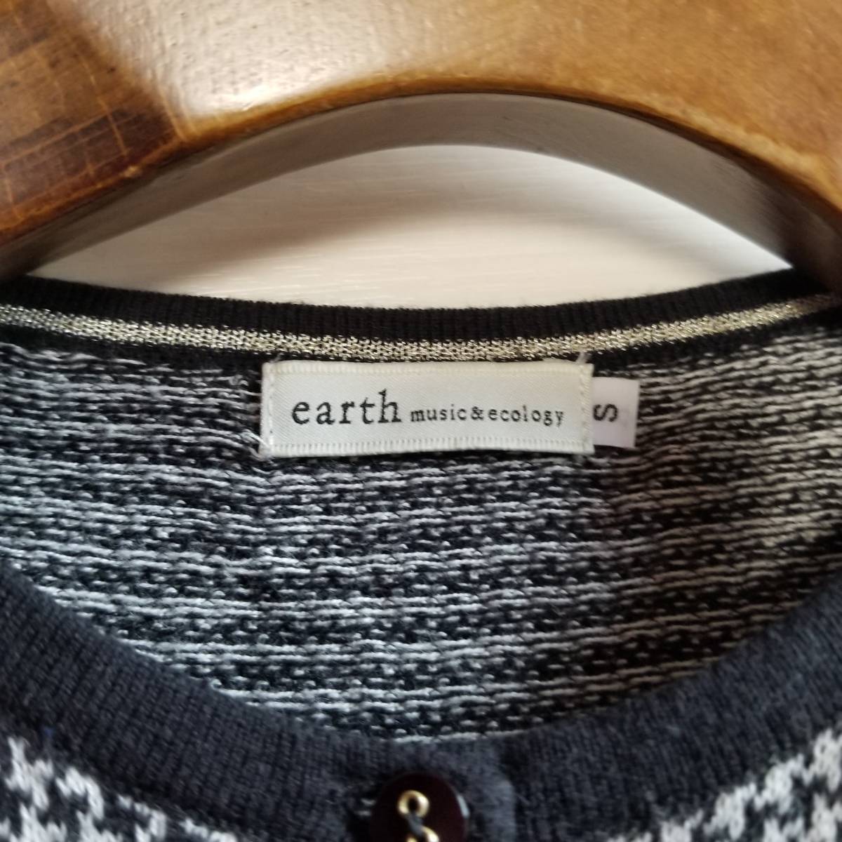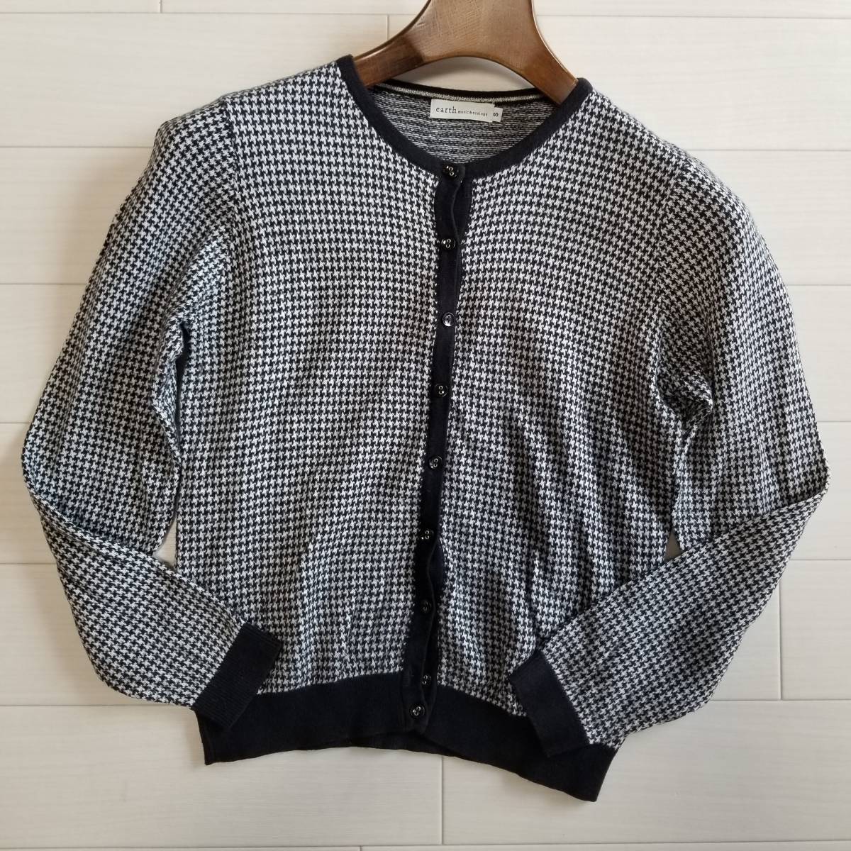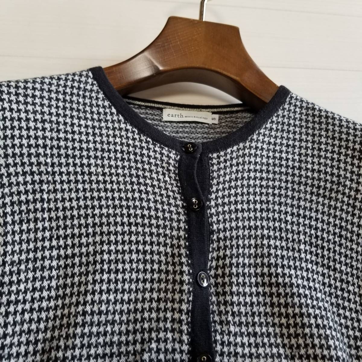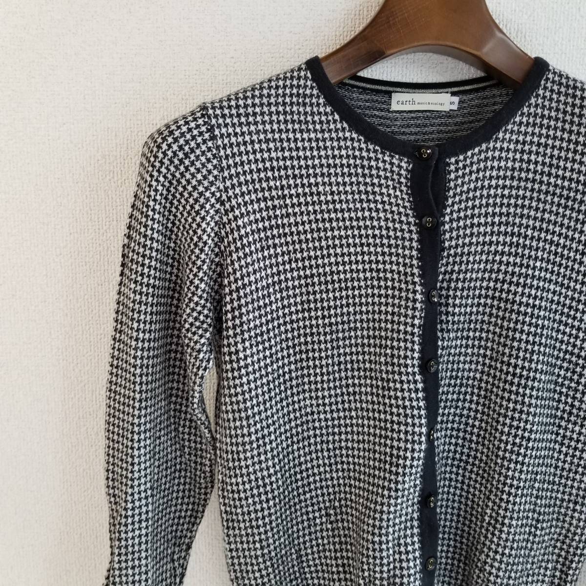 earth music&ecology アースミュージックアンドエコロジー 千鳥格子 カーディガン ニット 長袖 ボタン ブラック×ホワイト サイズS AU23